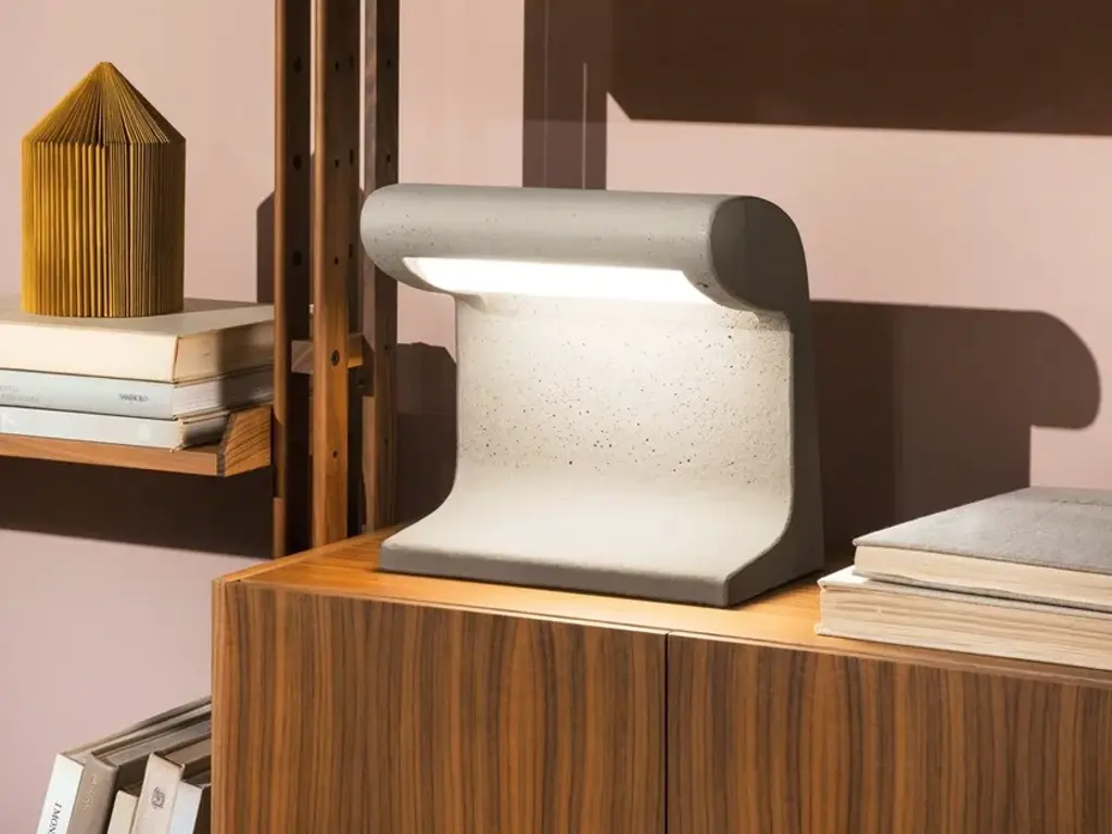 Concrete indoor table lamp, conceived for the Unité d’habitation de Marseille and for Bhakra Dam, Sukhna Dam in India in 1952. Each lamp is a handcrafted product: small aesthetic and finishing differences between one lamp and the other make them unique.Source: LED BOARDTotal power: 19,2 WEmission: directSwitching: dimmer on cable (only indoor)Tension: 110/230VColor temperature 3000KLuminous flux 960 lmTyp cri 80Energy class A+Materials concrete + PMMA