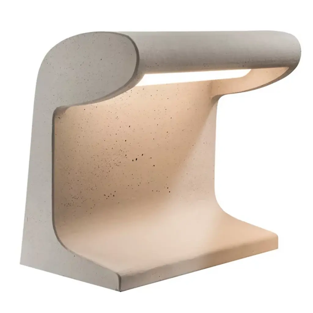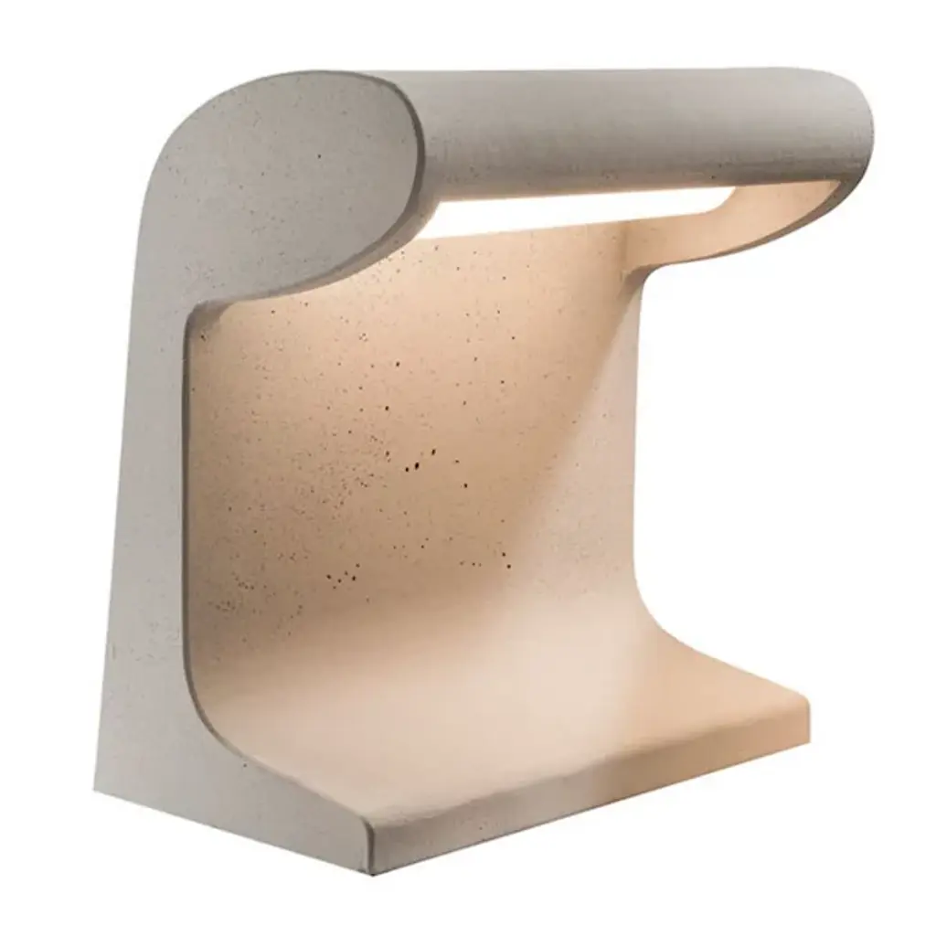 Designed by iconic French architect Le Corbusier, the Borne Béton Petite LED Table Lamp from Nemo speaks to one’s contemplative setting with a smooth concrete form glazed in inviting light. Created originally for housing and dam projects in the mid-20th century by Le Corbusier, the piece represents the longevity of a highly refined design. Le Corbusier believed that form should be reduced to its pure function, without decoration. Here Le Corbusier has created a concrete shape that fluidly combines the traditional base, column, and shade. The piece’s efficient curves also serve as an efficient diffuser for the downward-directed LED light. This light scatters toward one as an ambient task light.