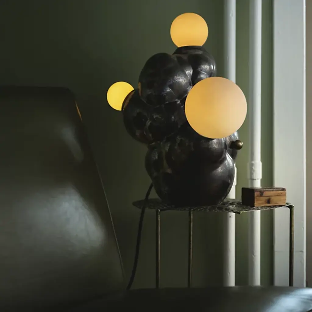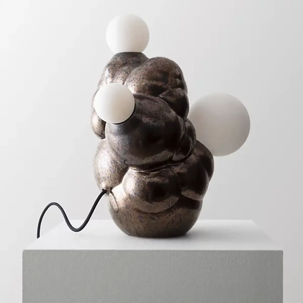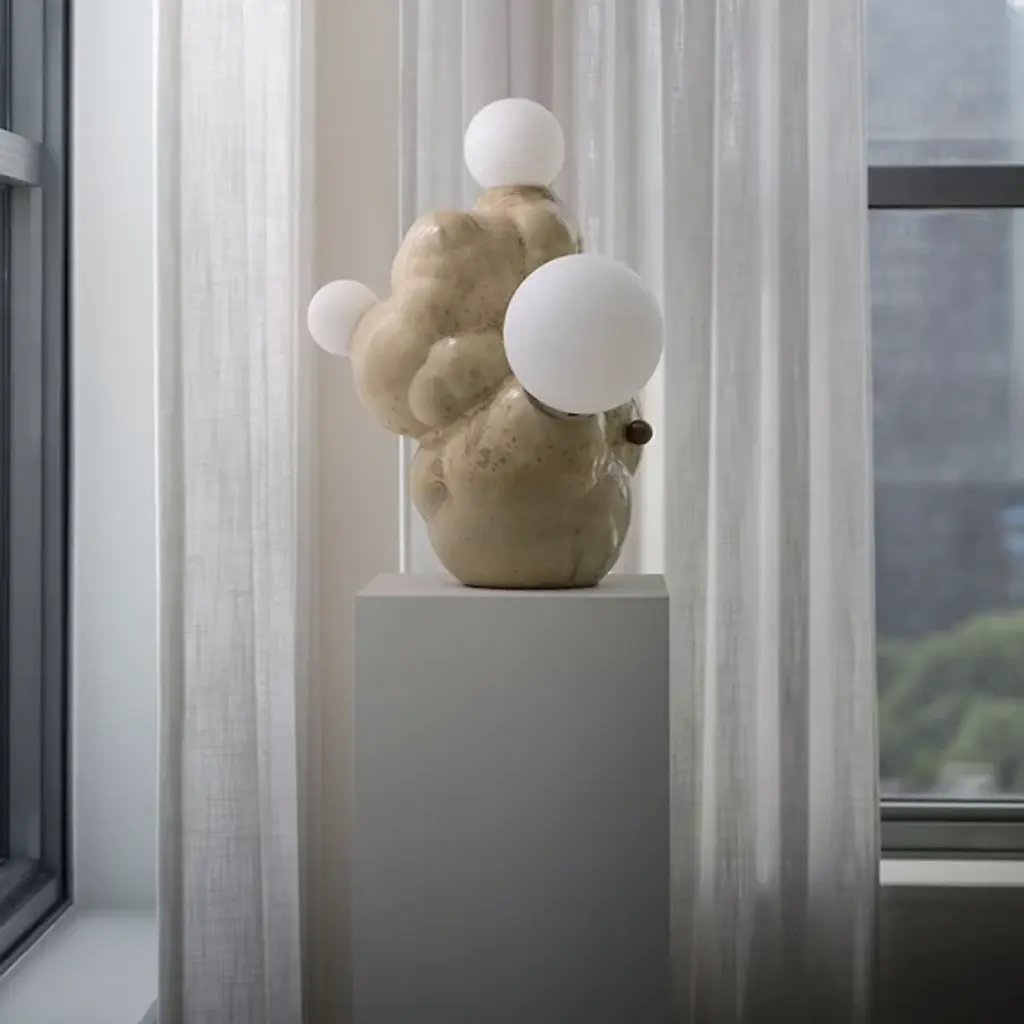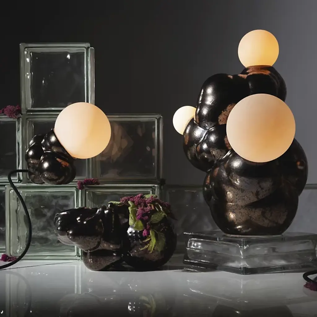 The Botryoidal Table Lamp from Forma Rosa Studio draws inspiration from the intricate beauty of botryoidal crystal formations, blending digital design with artisanal craftsmanship. Designed by Maria Castillo Irribarren and Santiago Braby Brown, each lamp is meticulously handcrafted in Peru and finished with custom glazes for unique depth and texture. A brass dimmer knob controls three fully dimmable bulbs, while a custom-engraved brass plate marks its edition number. With a 120V Type A plug, it’s both exclusive and functional.