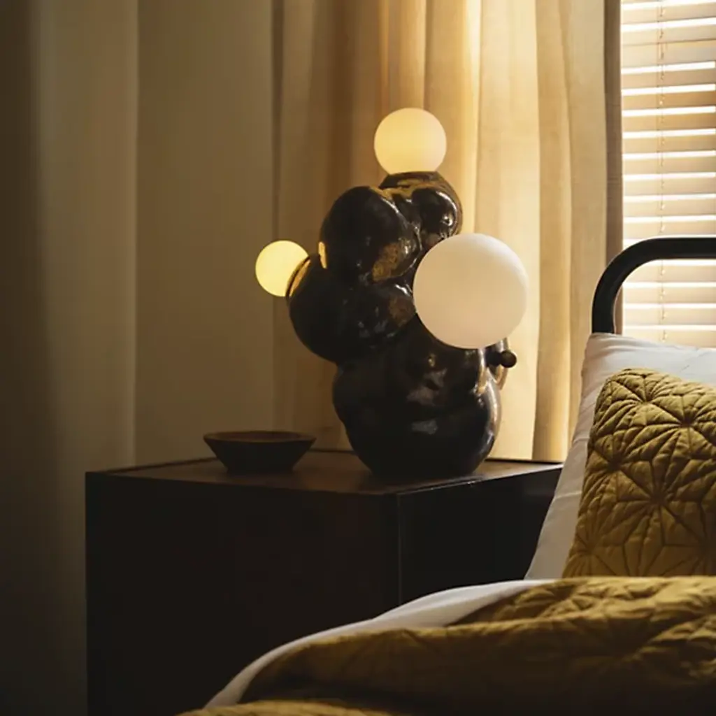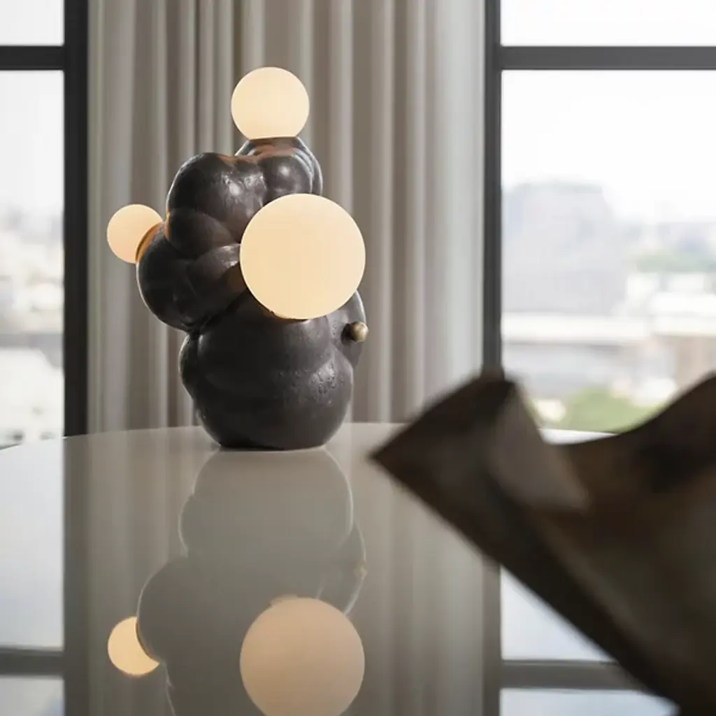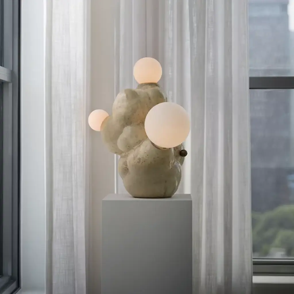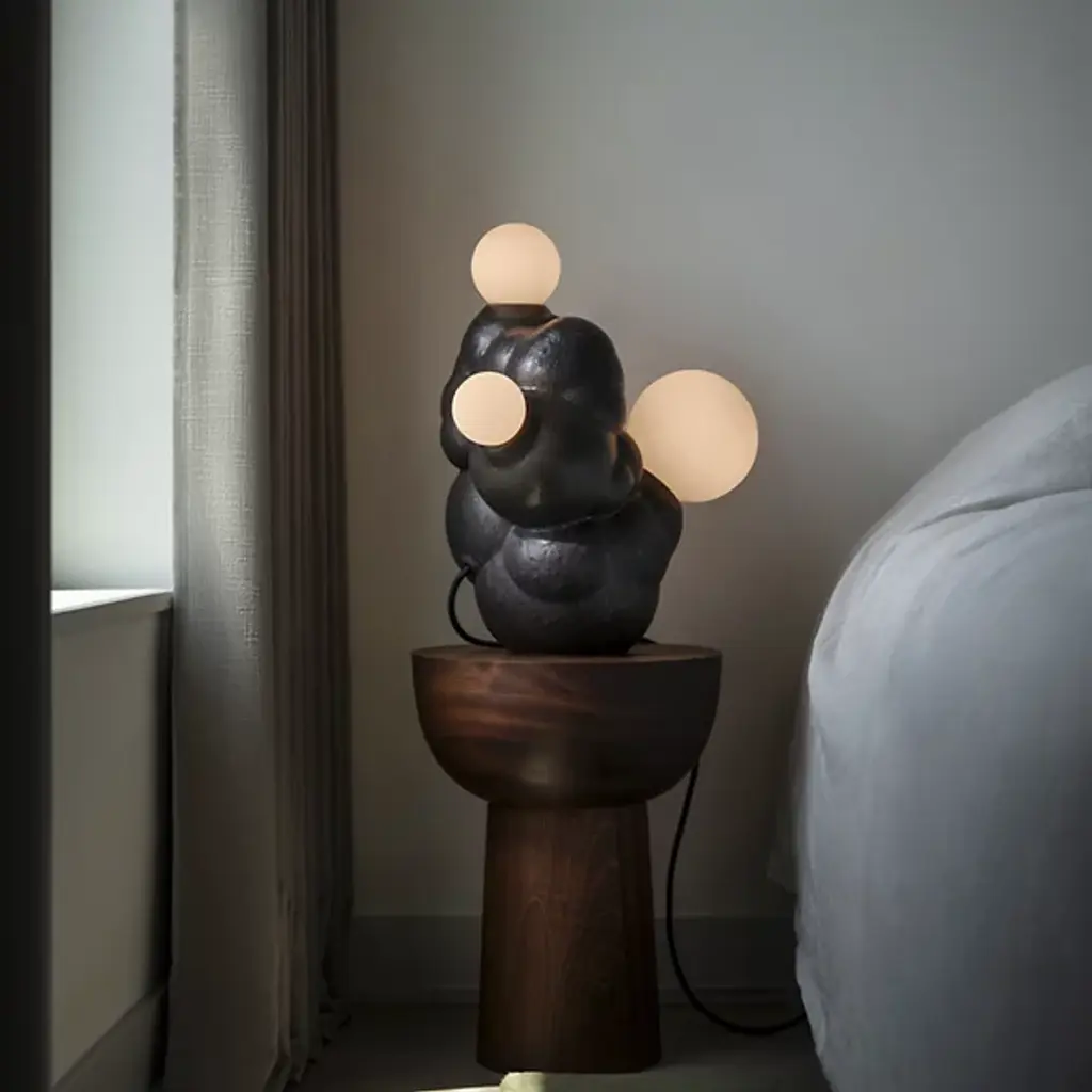 The Botryoidal Table Lamp from Forma Rosa Studio draws inspiration from the intricate beauty of botryoidal crystal formations, blending digital design with artisanal craftsmanship. Designed by Maria Castillo Irribarren and Santiago Braby Brown, each lamp is meticulously handcrafted in Peru and finished with custom glazes for unique depth and texture. A brass dimmer knob controls three fully dimmable bulbs, while a custom-engraved brass plate marks its edition number. With a 120V Type A plug, it’s both exclusive and functional.