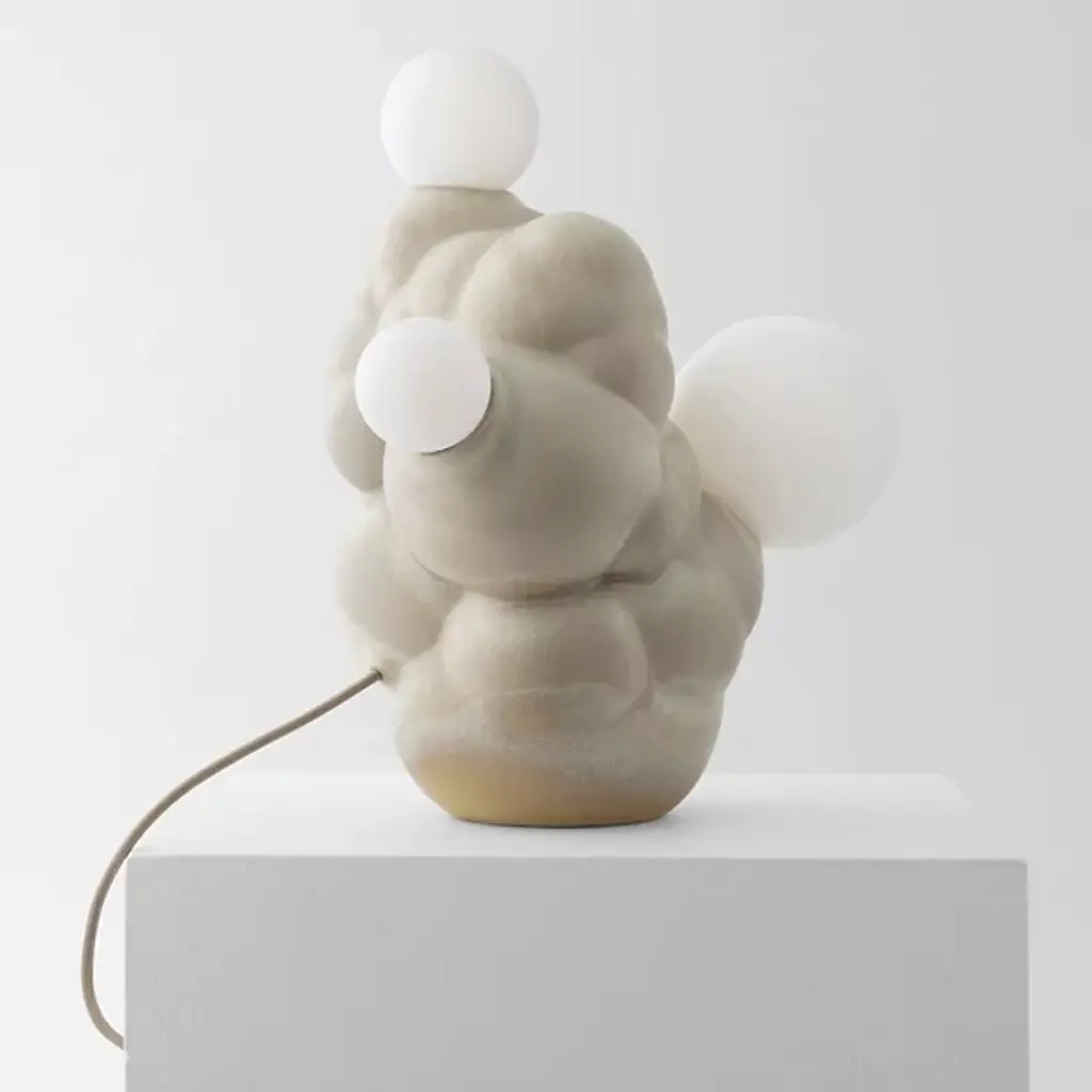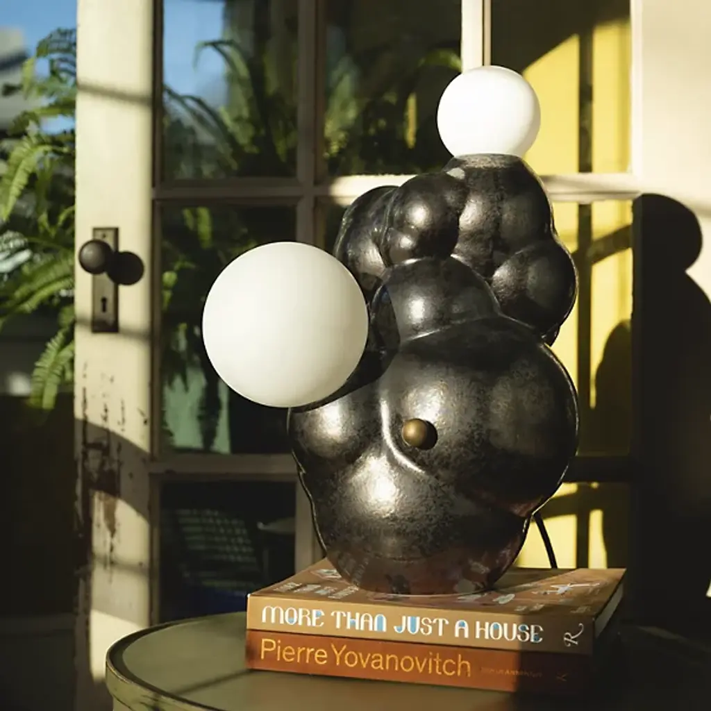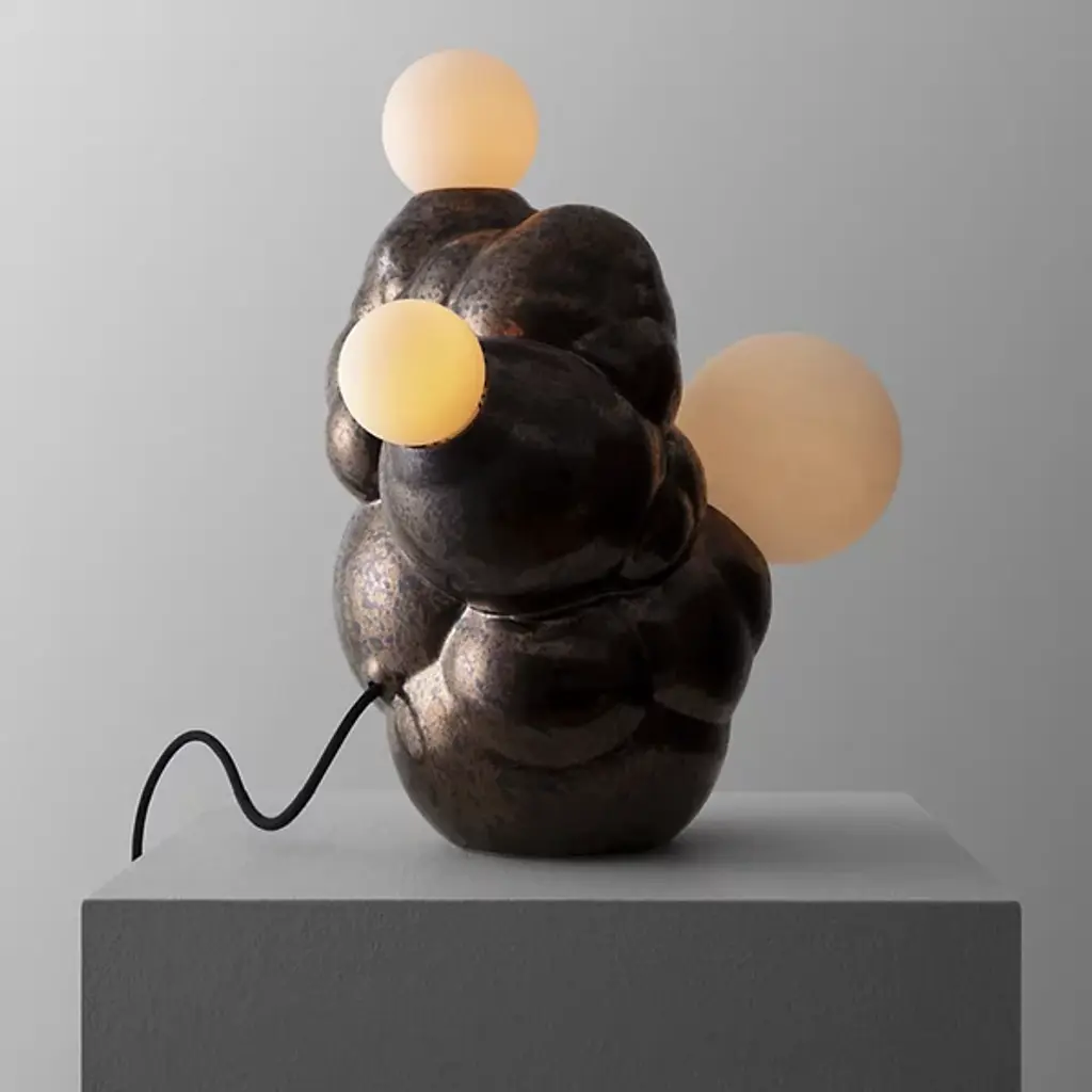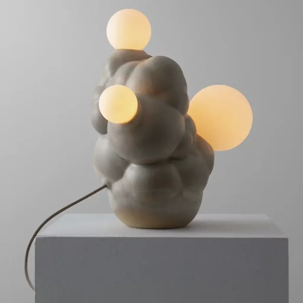 The Botryoidal Table Lamp from Forma Rosa Studio draws inspiration from the intricate beauty of botryoidal crystal formations, blending digital design with artisanal craftsmanship. Designed by Maria Castillo Irribarren and Santiago Braby Brown, each lamp is meticulously handcrafted in Peru and finished with custom glazes for unique depth and texture. A brass dimmer knob controls three fully dimmable bulbs, while a custom-engraved brass plate marks its edition number. With a 120V Type A plug, it’s both exclusive and functional.