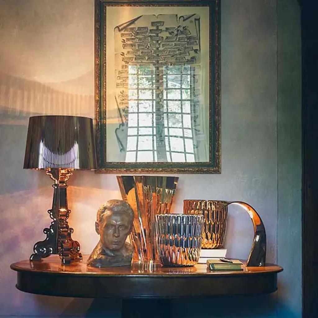 If it ain't Baroque, don't fix it. The Kartell Bourgie Table Lamp is a Kartell favorite due to designer Ferruccio Laviani's ability to combine a classic Baroque form with decidedly 21st century polycarbonate construction. The resulting statement piece is at once elegant and ironic. Available in a number of unique single or multi-color options. Shade height is adjustable through the use of specially designed spacers.
