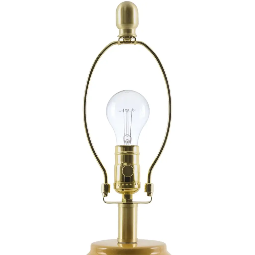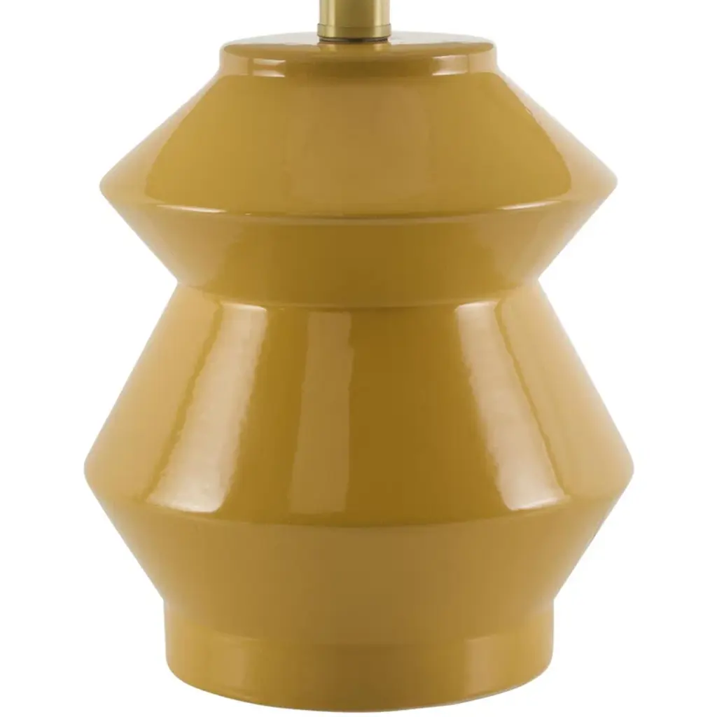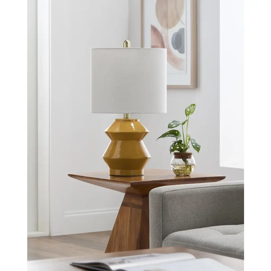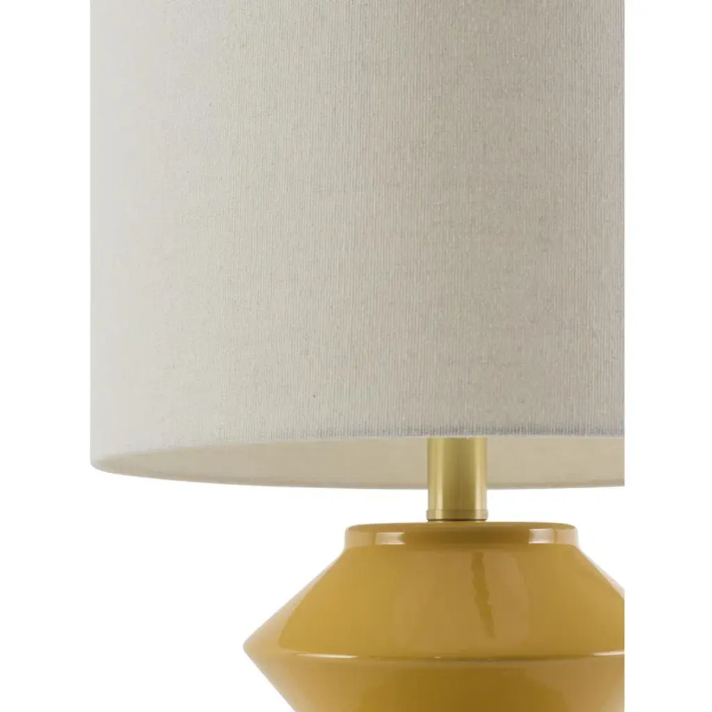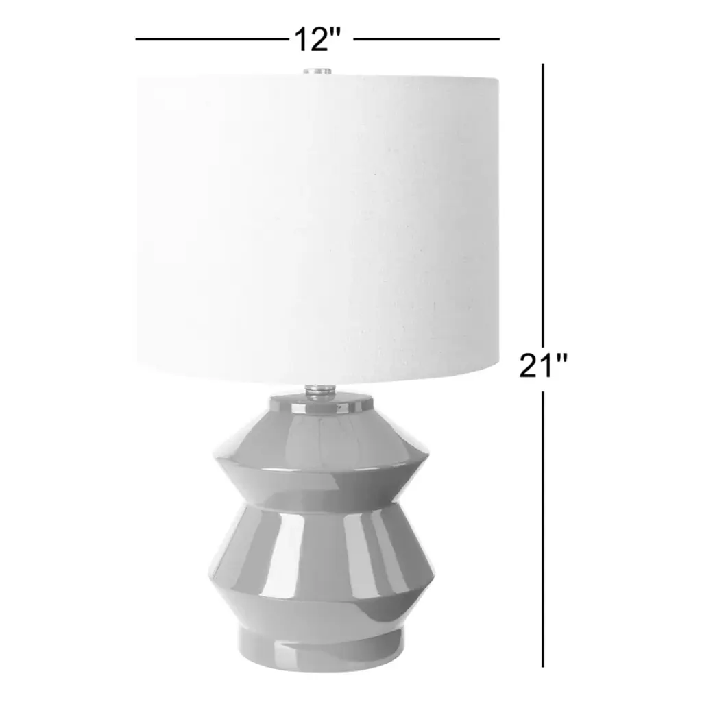This table lamp illuminates your space with plenty of light and a modern feel. Its base is crafted from ceramic and has a geometric body. The design features an angled tapering aesthetic that supports a single fixture. We love that it comes with a linen fabric drum shade for a classic look that also elegantly diffuses the shine from the standard bulb inside (sold separately). This table lamp adds shine and character to your sideboard, nightstand, or desk.