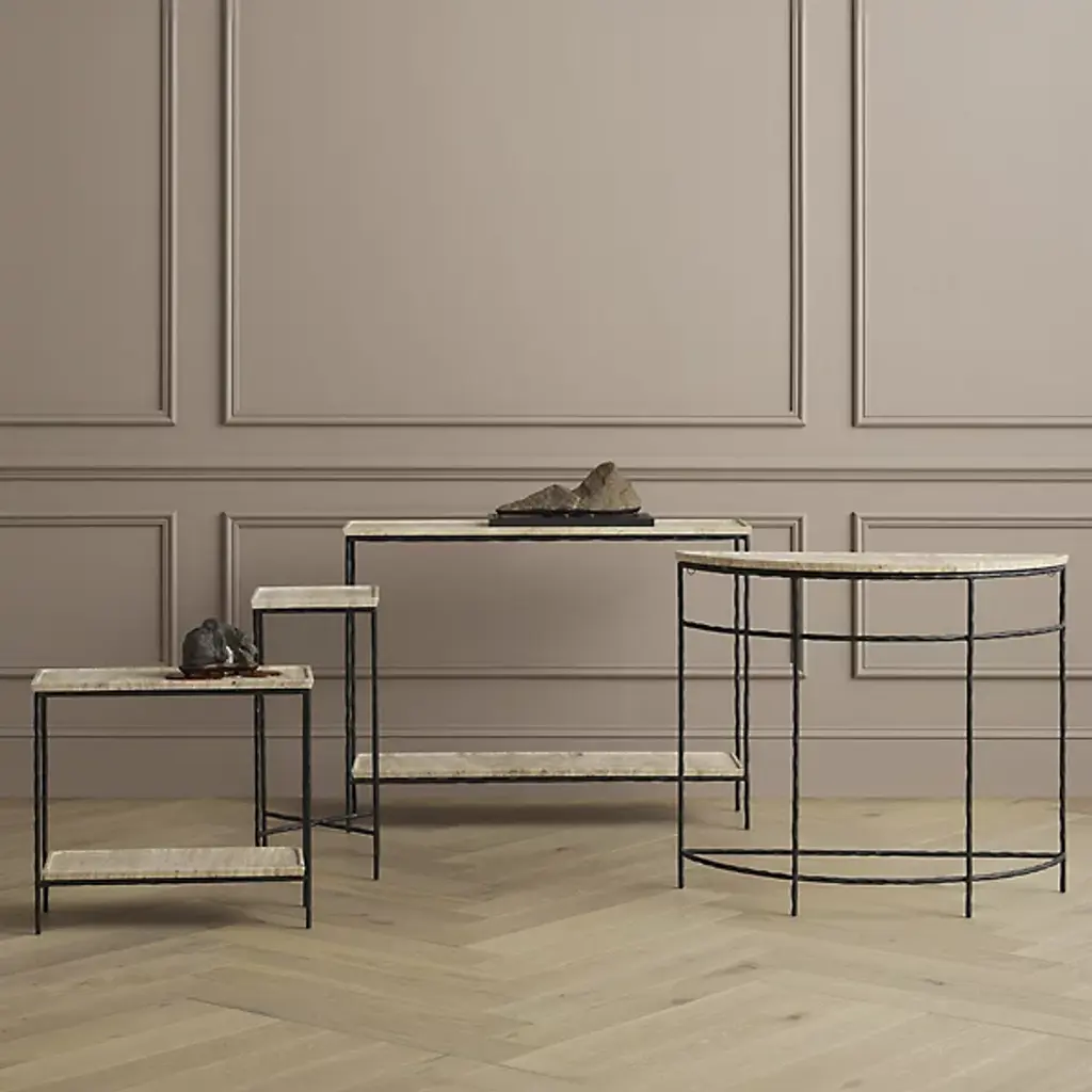 The Boyles Side Table from Currey & Company brings a streamlined, industrial style to your living spaces. Its linear metal framework is durably made to support the placement of your accessories. Use it beside a sofa or next to your bed to hold a table lamp, books, and framed photos. Boyles leaves plenty of room for display at the bottom. No matter where it’s placed, this side table is at once rugged and refined, which makes it versatile.