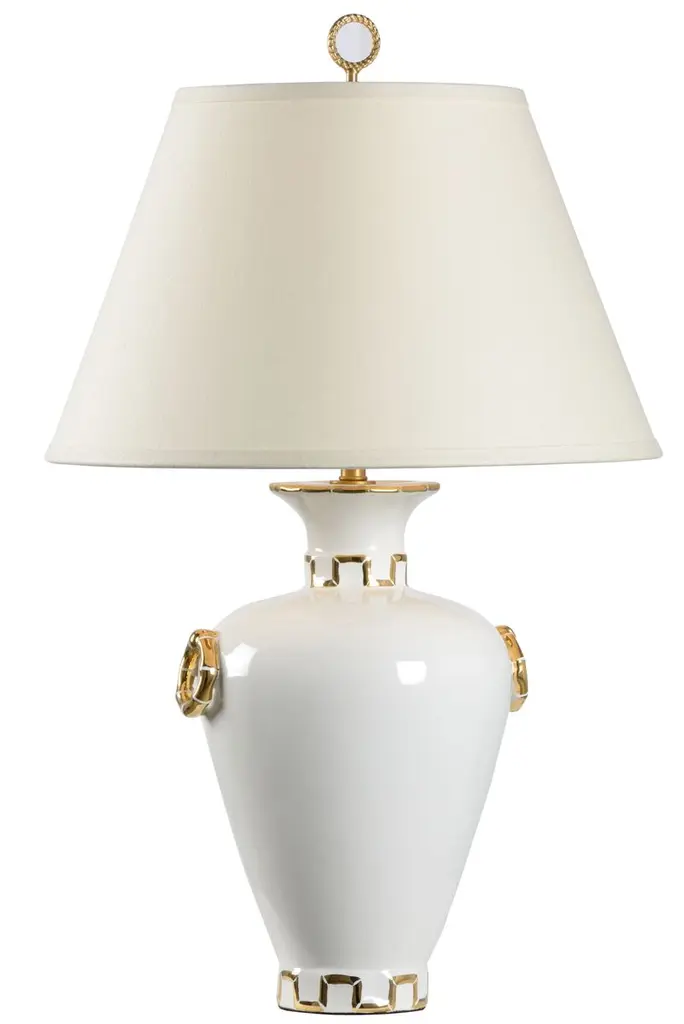 Inspired By Our Popular Ring Vase, This Lamp Features A White Ceramic Vase With Old Gold Details. Designed By Bradshaw Orrell.