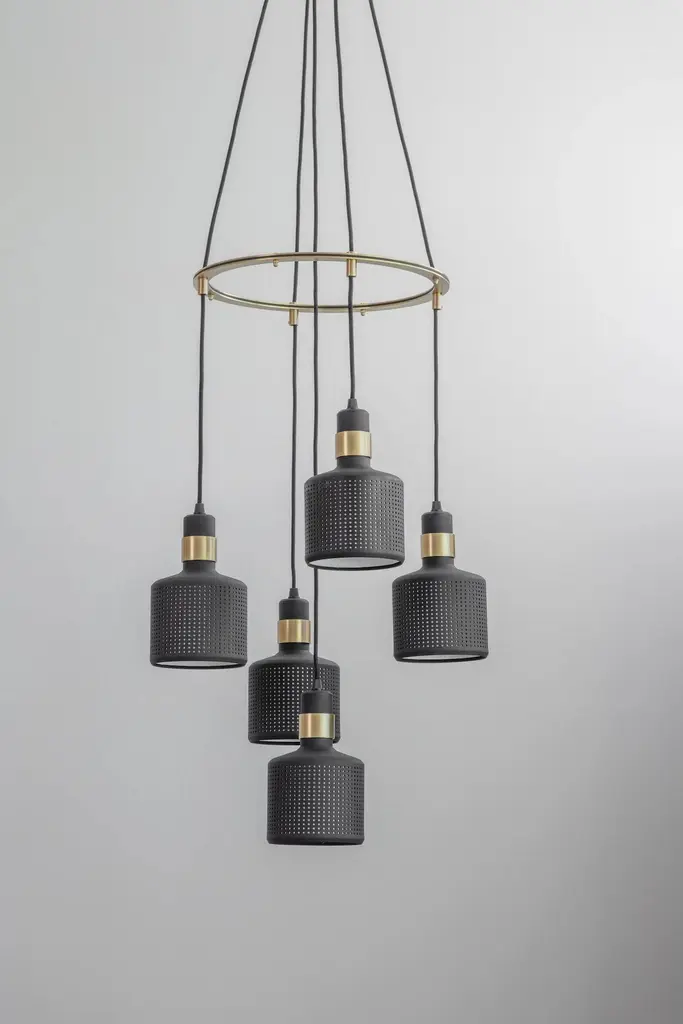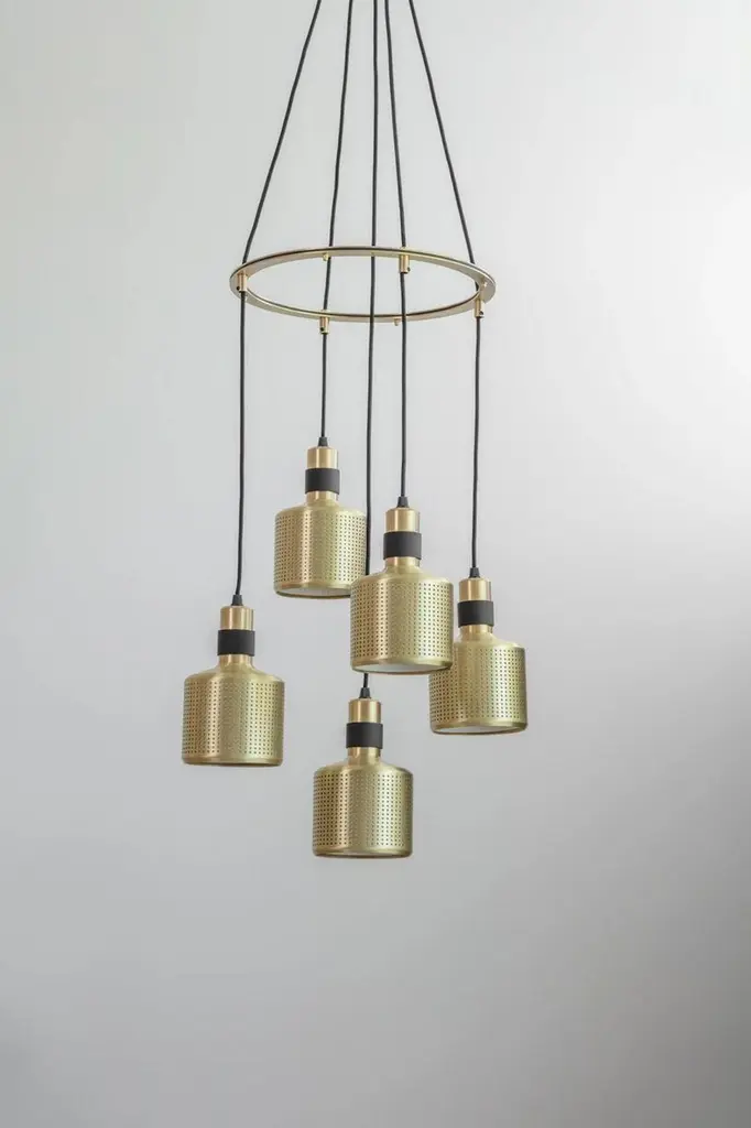Brass riddle cluster light 5 by Bert FrankDimensions: H 20 x W 12 x D 12 cm each lampMaterials: brass and steelAvailable finishes: brass and blackAll our lamps can be wired according to each country. If sold to the USA it will be wired for the USA for instance.When Adam Yeats and Robbie Llewellyn founded Bert Frank in 2013 it was a meeting of minds and the start of a collaborative creative partnership with engineering at the core.Both men share a love of design and deep respect for the heritage of British engineering. Both wanted to create high-end products that would stand the test of time and fly in the face of throwaway consumerism. The partnership has resulted in award-winning lighting and accessories that fuse the integrity of the small-scale workshop with timeless aesthetics reimagined for today.The two men work closely together from concept to end product. Robbie’s imagination and occasional flights of fancy are informed by Adam’s understanding of engineering principles and fabrication techniques. Equally, Adam's designs are often the starting point for a collection. In that sense Bert Frank is a true creative collaboration. As a result, every designed is honed to perfection, every detail carefully considered.