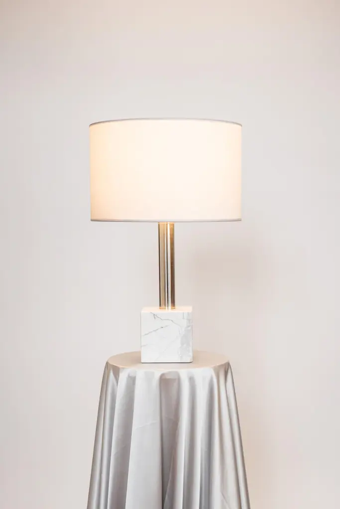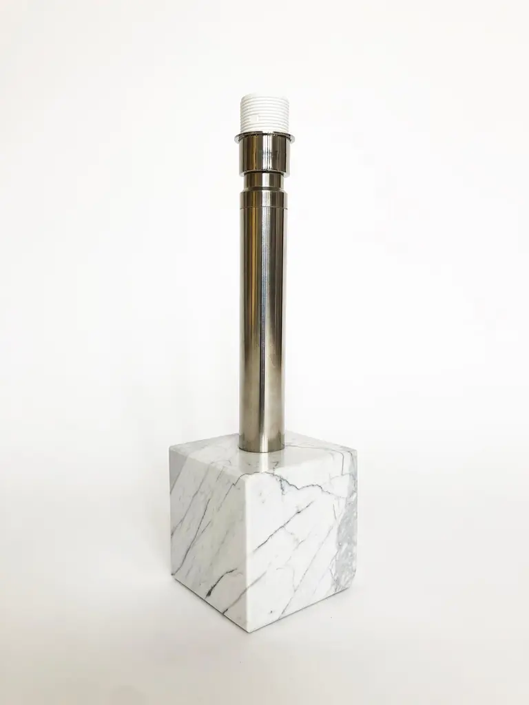 Brass sculpted table lamp by Brajak VitbergATHENS 3.3Materials: Mura marble (also available with Carrara marble), Polished brasswhite or black cotton lampshade, cotton wiringDimensions: 59 x 35 x 35 cmBijelic and Brajak are two architects from Ljubljana, Slovenia.They are striving to design craft elements and make them timeless through experimental designing process.The studio creates a range of products from handmade and limited small series to one piece unique products, inspired by materials and forms that create incomplete perfection.All our lamps can be wired according to each country. If sold to the USA it will be wired for the USA for instance.