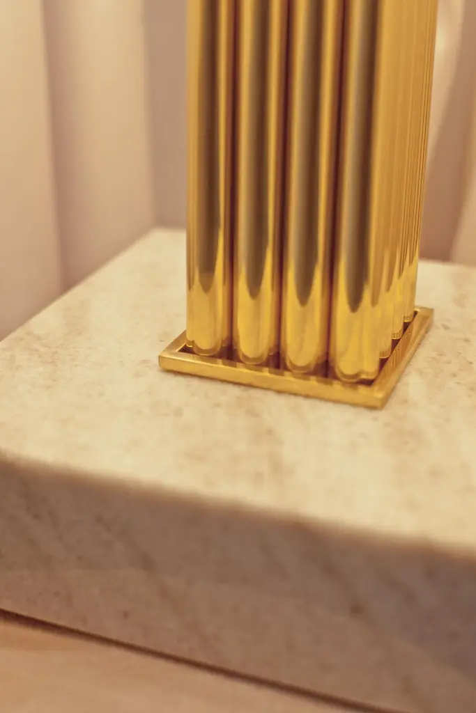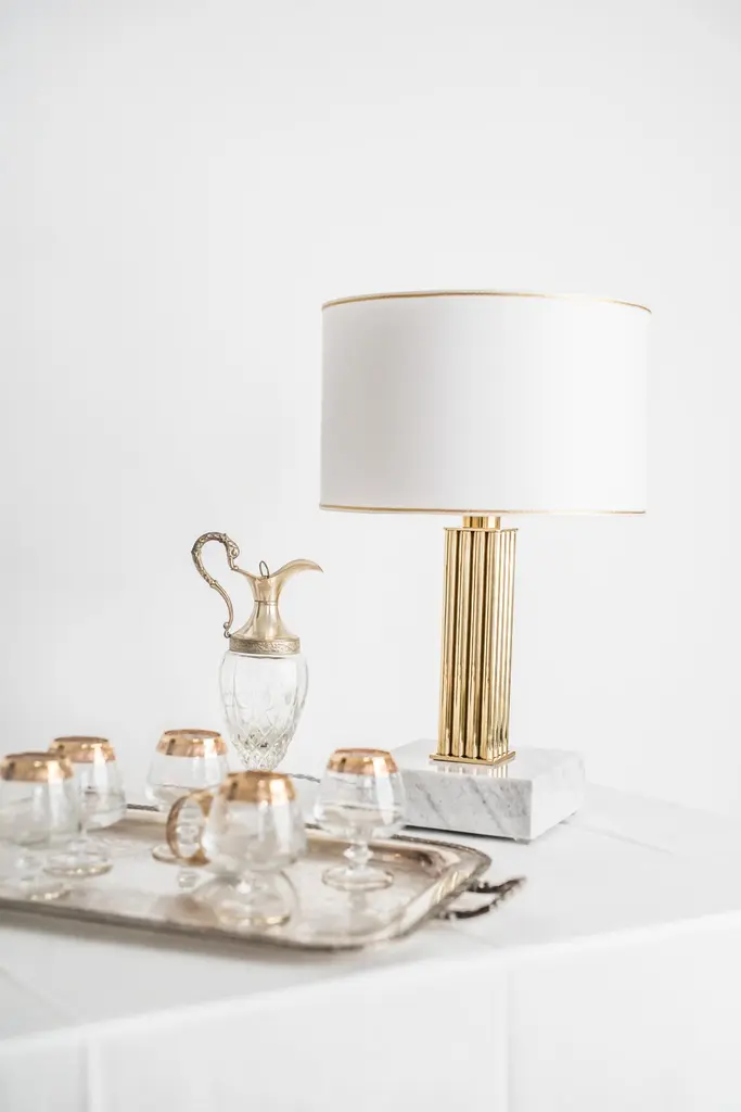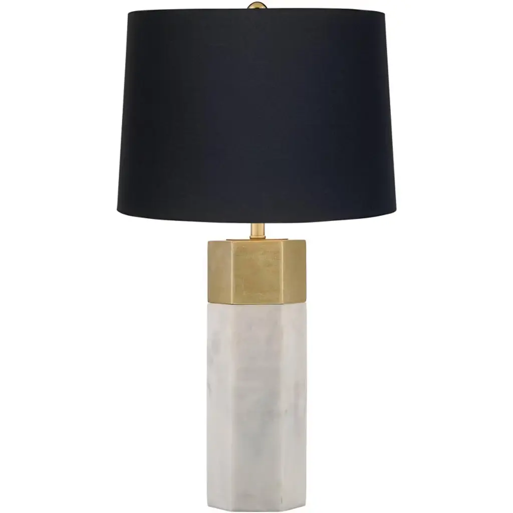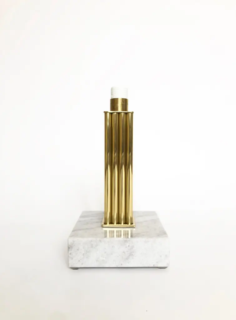 Brass Sculpted Table Lamp by Brajak VitbergATHENS 1.1.Materials: Mura marble (also available with carrara marble), Polished brasswhite or black cotton lampshade, cotton wiringDimensions: 53 x 35 x 35 cmBijelic and Brajak are two architects from Ljubljana, Slovenia.They are striving to design craft elements and make them timeless through experimental designing process.The studio creates a range of products from handmade and limited small series to one piece unique products, inspired by materials and forms that create incomplete perfection.All our lamps can be wired according to each country. If sold to the USA it will be wired for the USA for instance.