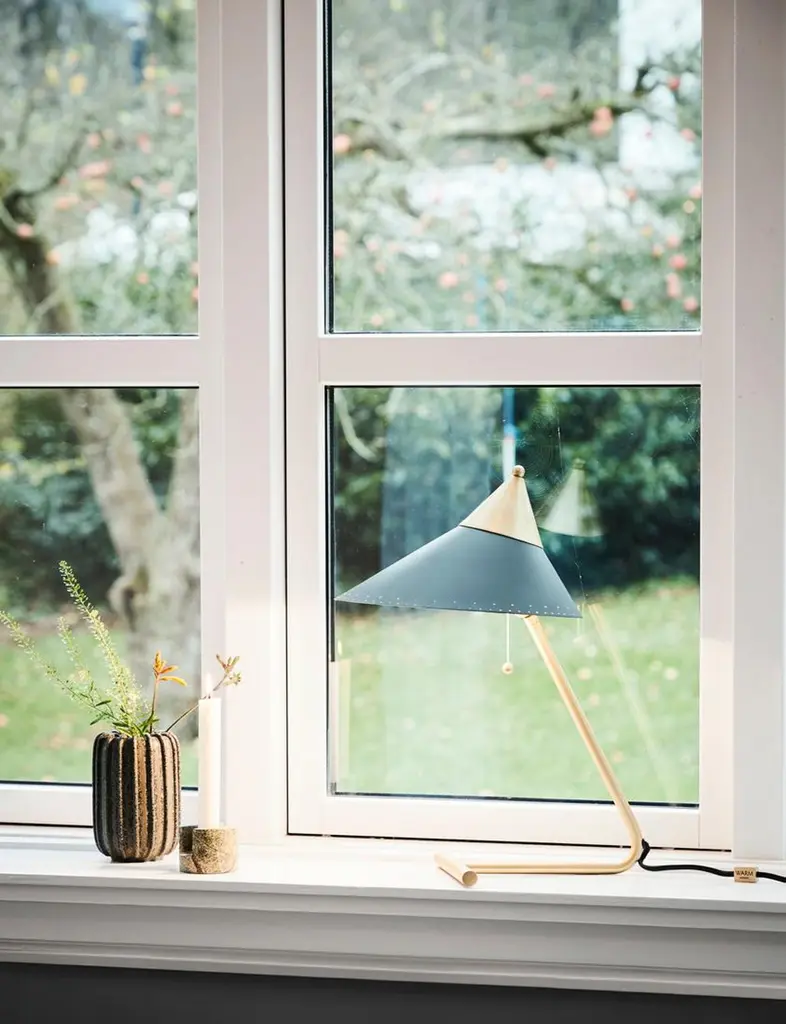 Brass top warm white table lamp by Warm NordicDimensions: D 24 x W 31 x H 41 cmMaterial: Lacquered steel, brassWeight: 1 kgAlso available in different colours.A table lamp with unique, solid brass details, created in the 1950s by the Danish designer, Svend Aage Holm-Sørensen, who is internationally acclaimed for his lamps. The Brass Top table lamp is perfect for a home office with its original design, in which solid brass takes pride of place, from the base and stand to the brass top of the asymmetric shade. The several elegant details include the little ball on the top of the table lamp, which is in harmony with the ball of the power switch, not to mention the light holes along the edge of the metal shade, which were characteristic of both Svend Aage Holm-Sørensen and the era, and which add an extra dimension to the lighting effect. Choose from several classic colours in Warm Nordic's exclusive silky matt quality paint, which guarantees an extraordinarily beautiful and durable surface. Warm Nordic is an ambitious design brand anchored in Nordic design history and with a timeless, aesthetic style that inspires you to appreciate the little things in life. The company is the result of several years’ intense work on developing a new design brand with design history, quality and personality at its core. Warm Nordic boasts a colourful and charming universe of furniture, lamps and accessories full of personality. Our designs encapsulate the Nordic spirit, which in its essence is timeless, inclusive and warm.