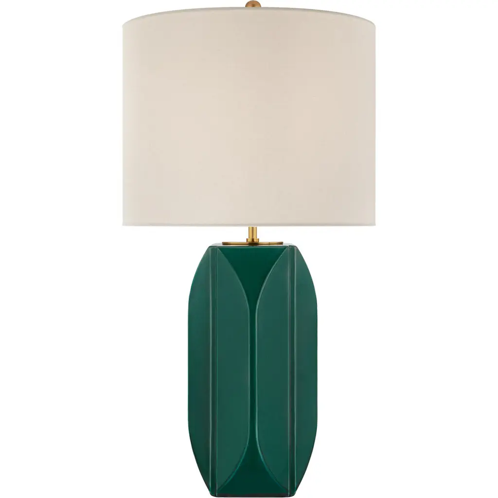 While ribbed detailing has never gone out of style, it's really coming to the forefront now. The reactive glaze of this table lamp's ceramic body emphasizes the graceful rhythmic lines. The linen shade is a classic grace note.