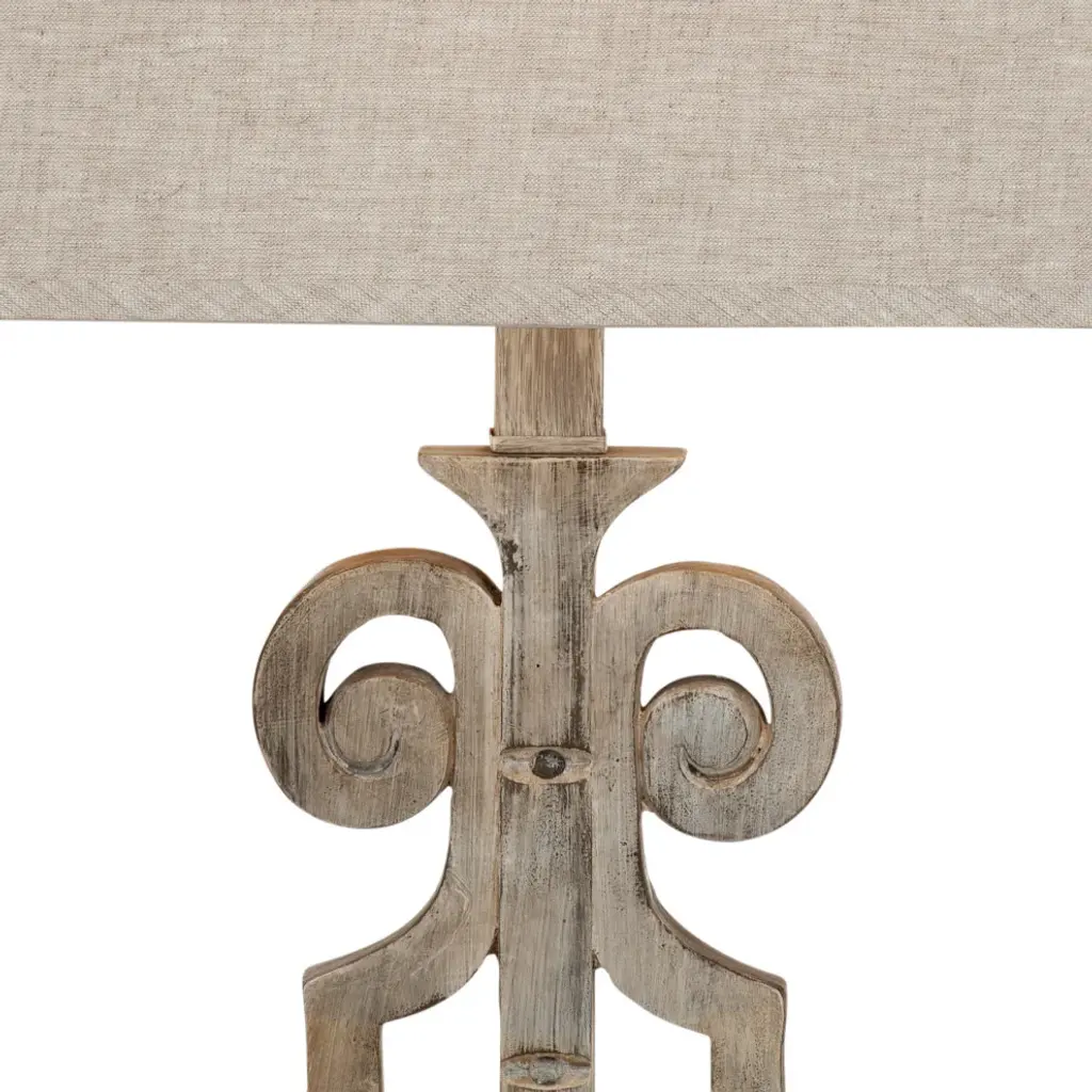 Ornate curvature and a weathered gray finish make this Belgian luxe style table lamp the perfect stately addition to any space.Features:Features an on-off light switchBulb type a required, but not includedEasy assembly - just attach harp, finial and shadeFeatures an on-off light switchBulb type a required, but not includedEasy assembly - just attach harp, finial and shadeFor over a century, Bassett Mirror has been synonymous with style and quality, transforming homes with its sophisticated and timeless designs. With a wide-ranging collection of furniture, lighting, mirrors, and art, Bassett Mirror seamlessly blends modern style with classic appeal. From rustic modern to luxe glam, each piece is thoughtfully crafted to inspire and elevate any space. Committed to exceptional value and customer care, Bassett Mirror makes it easy for homeowners to create beautiful, personalized interiors with confidence.