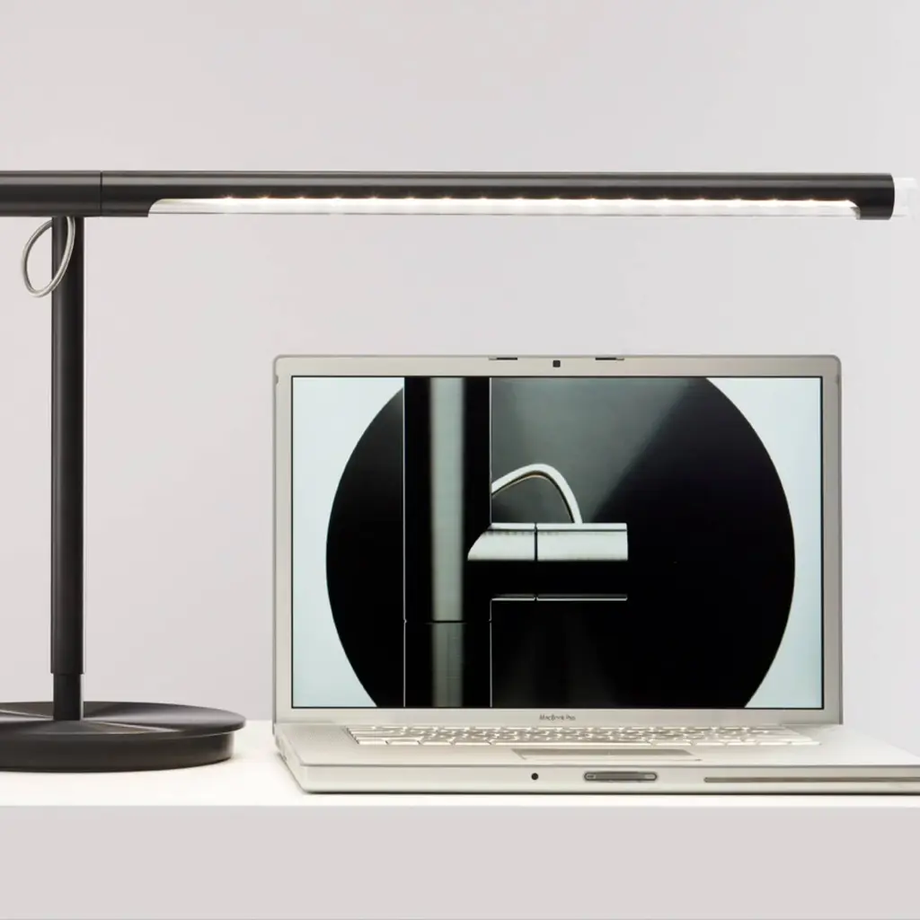 Let's be precise. That's the thinking behind the Brazo Table Lamp from San Francisco's Pablo Designs. Effortlessly, the beam of light can be aimed 360 degrees in any direction by a twist of the aluminum shade. Height adjustable, with arm-tilt range to 90 degrees and finely calibrated light-focus control, Brazo is equal to any task. LED technology provides 50K hours of energy-efficient and maintenance-free illumination and the lamp's materials are 97% recyclable. Not to mention designer Pablo Pardo's corresponding exactitude in conceiving this strikingly linear style.
