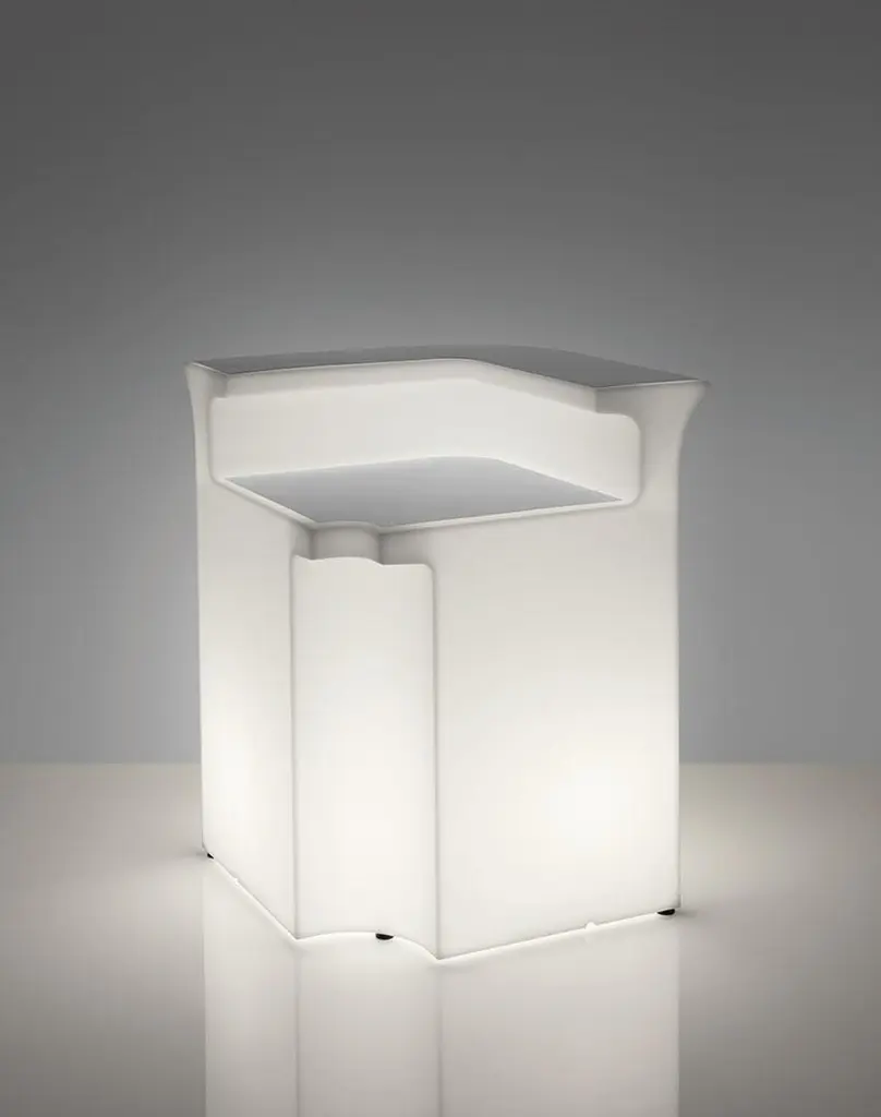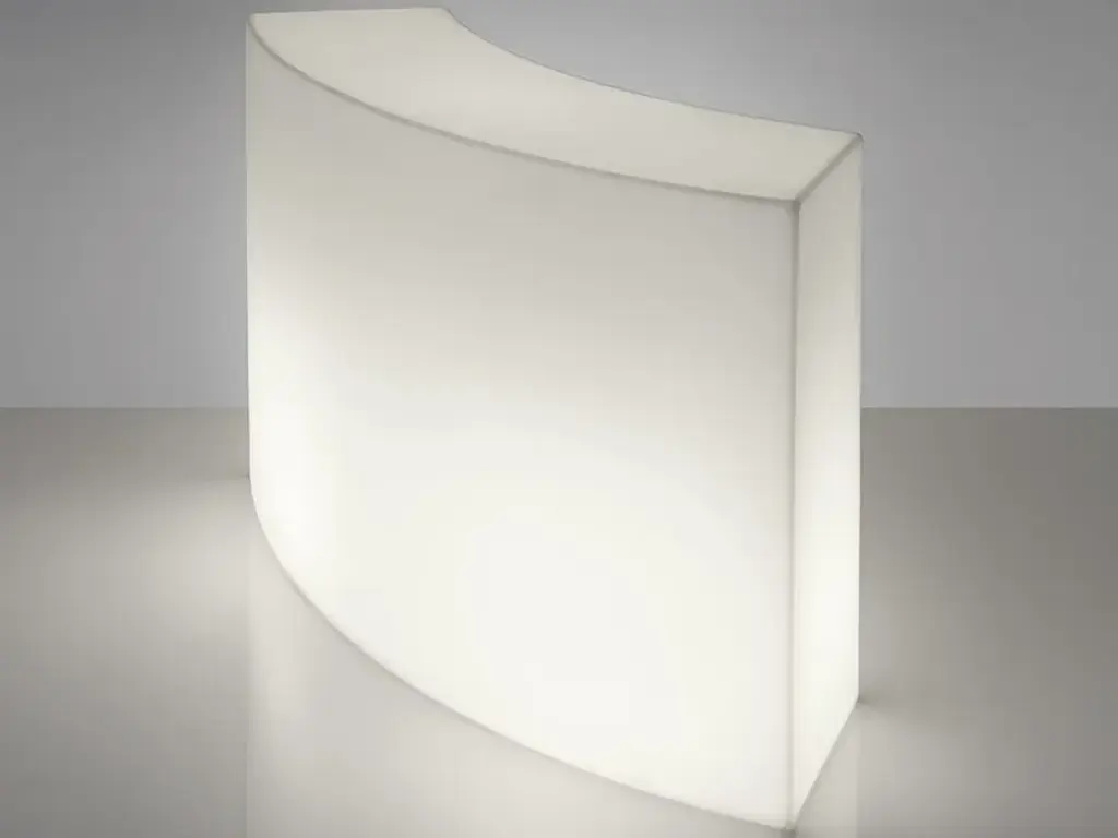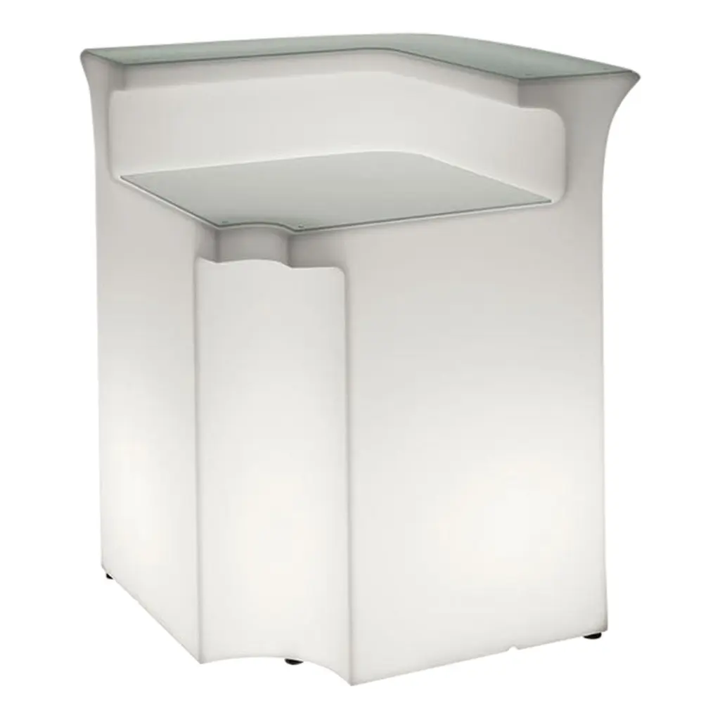 Break Corner Lighted Bar Counter by SLIDE StudioDimensions: D 85 x W 85 x H 110 cm.Materials: Polyethylene and stainless steel.Weight: 34,4 kg.This product is suitable for indoor and outdoor use. Available in a lighted version. Additional details on glass or steel can be added upon request. Please contact us.Our stories happen in places precious to us. SLIDE was born from the desire to produce furniture and light to create the perfect atmosphere that highlights emotions.Design is inspiration, surprise, joy. It's the amazement of seeing something unique for the first time. It's creating spaces to feel good and live surrounded by beauty. It means giving a personal imprint to indoor and outdoor spaces. It means choosing your ideal element that is the perfect setting for emotions and experiences, which become indelible memories. The founder Giò Colonna Romano knows this well, combining his fervent imagination with thirty years of know-how in the processing of plastic resins, giving birth to SLIDE in 2002. The first note of amazement is the luminous furniture, which immediately became a must have in the world of events. Since 2015, his son Marco Colonna Romano has taken over the reins of the company, with the same desire to grow and innovate as his father. Thanks to a new panache and the team of young people it surrounds itself with, SLIDE becomes a beloved company for outdoor furniture: new shapes, materials and tactile textures have won the hearts and ideas of architects and interior designers around the world. SLIDE has thus created complete collections and furnishings, with new shapes, whose lines arise from collaboration with internationally renowned designers of the caliber of Alessandro Mendini, Paola Navone, Stefano Giovannoni, Fabio Novembre, Marcel Wanders, Karim Rashid, Marc Sadler, Francesco Favaretto and Marcantonio.New materials were chosen and inserted, initially soft and rigid polyurethane, and then comfortable cushions, waterproof fabrics, tactile textures ideal for completing the polyethylene furnishings with taste and class. But SLIDE does not forget its first essence, lighting: in recent years it has developed a line of much more technical lamps for large areas, essential in shape but with great visual impact. For the first time, Slide has managed to give an artisanal twist to an industrial process: to meet the increasingly high demands of living, the production creates non-replicable shades, in which every small imperfection enhances the industrial process and makes each piece unique . Because Slide's strength has always been the careful reading of the market, the creation of something that didn't exist and which then became necessary: here Slide continues its production in Buccinasco, on the outskirts of Milan, but its name and its products reach more than 130 countries around the world.