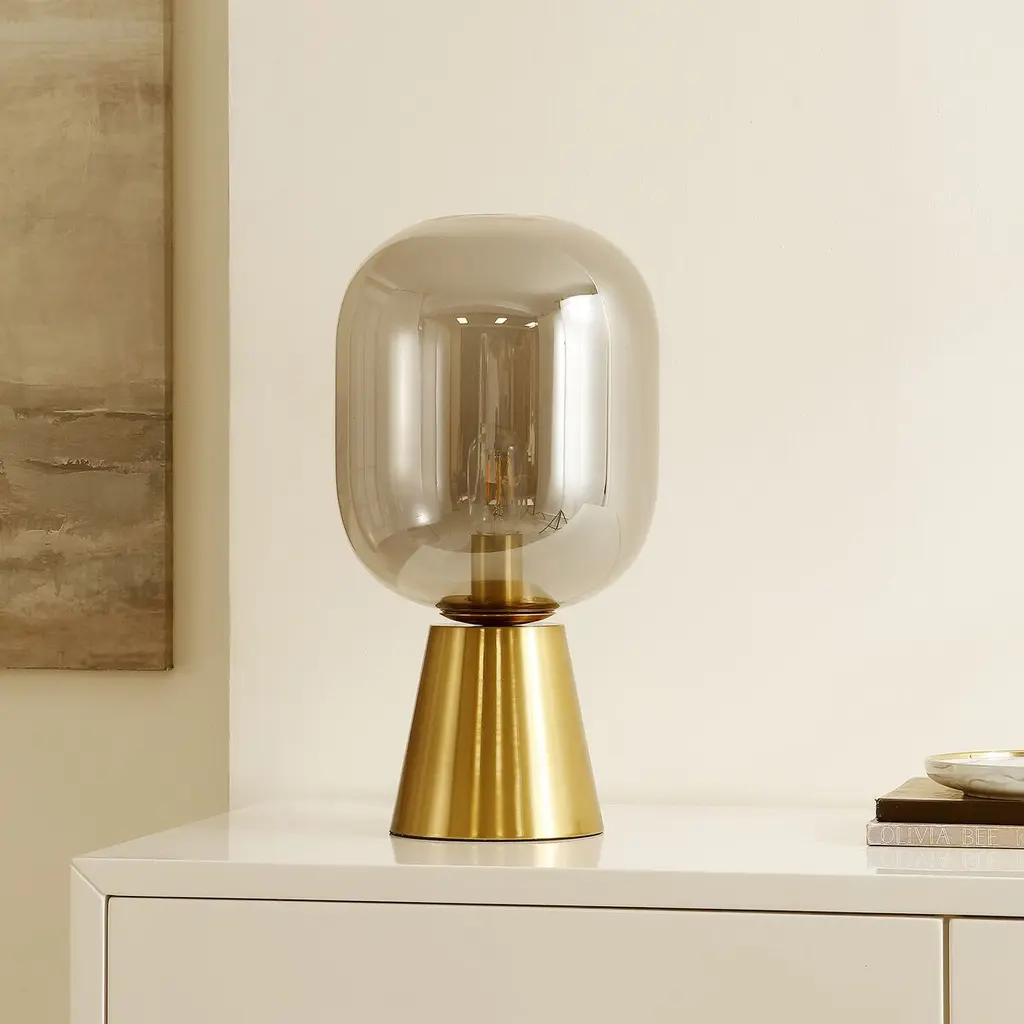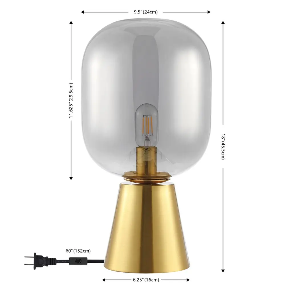 Breese 18" Glass Table Lamp, Smoke Grey/brass