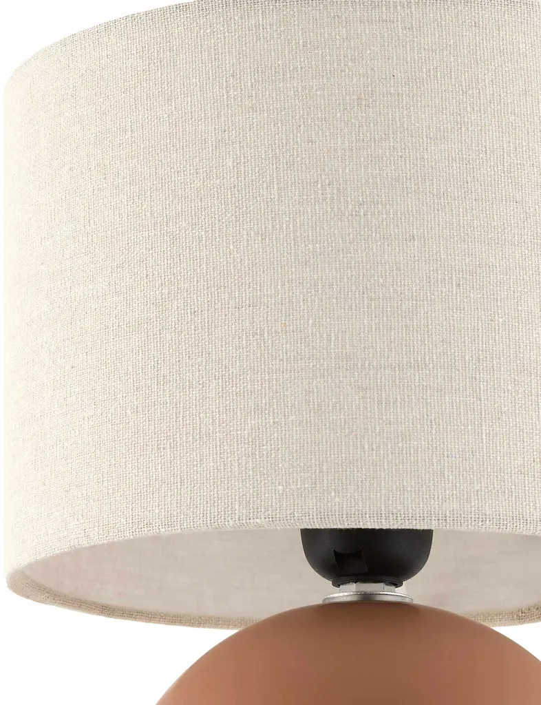 Collection: Brennberg Colors: Brick Red, Beige, White, Translucent Material: Body: Ceramic / Shade (Outside): Linen / Shade (Inside): Polyester Styles: Contemporary Made In: China Lighting Type: Accent Table Lighting Shade Material: Linen, Polyester Shade Color: White, Beige Cord Length: 6' Switch Type: Rocker Number of Bulbs: 1 Socket Type: E-26 Bulb Wattage: 40W