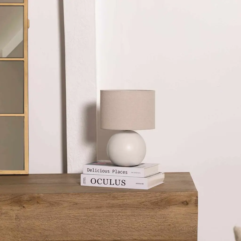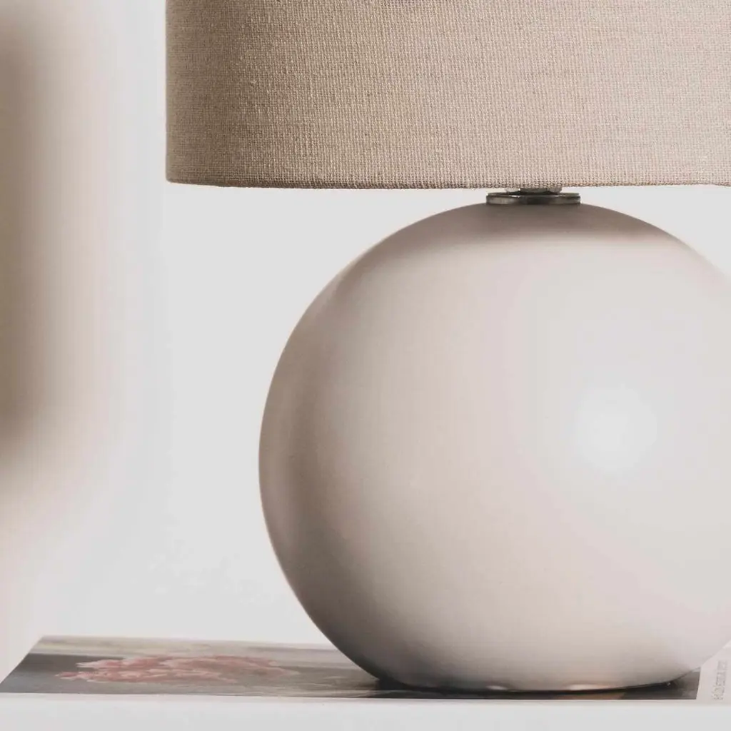 Collection: Brennberg Colors: White, Beige, Translucent Material: Body: Ceramic,Shade (Outside): Linen,Shade (Inside): Polyester Styles: Contemporary Made In: China Lighting Type: Accent Table Lighting Shade Material: LinenPolyester Shade Color: WhiteBeige Cord Length: 6' Switch Type: Rocker Number of Bulbs: 1 Socket Type: E-26 Bulb Wattage: 40W