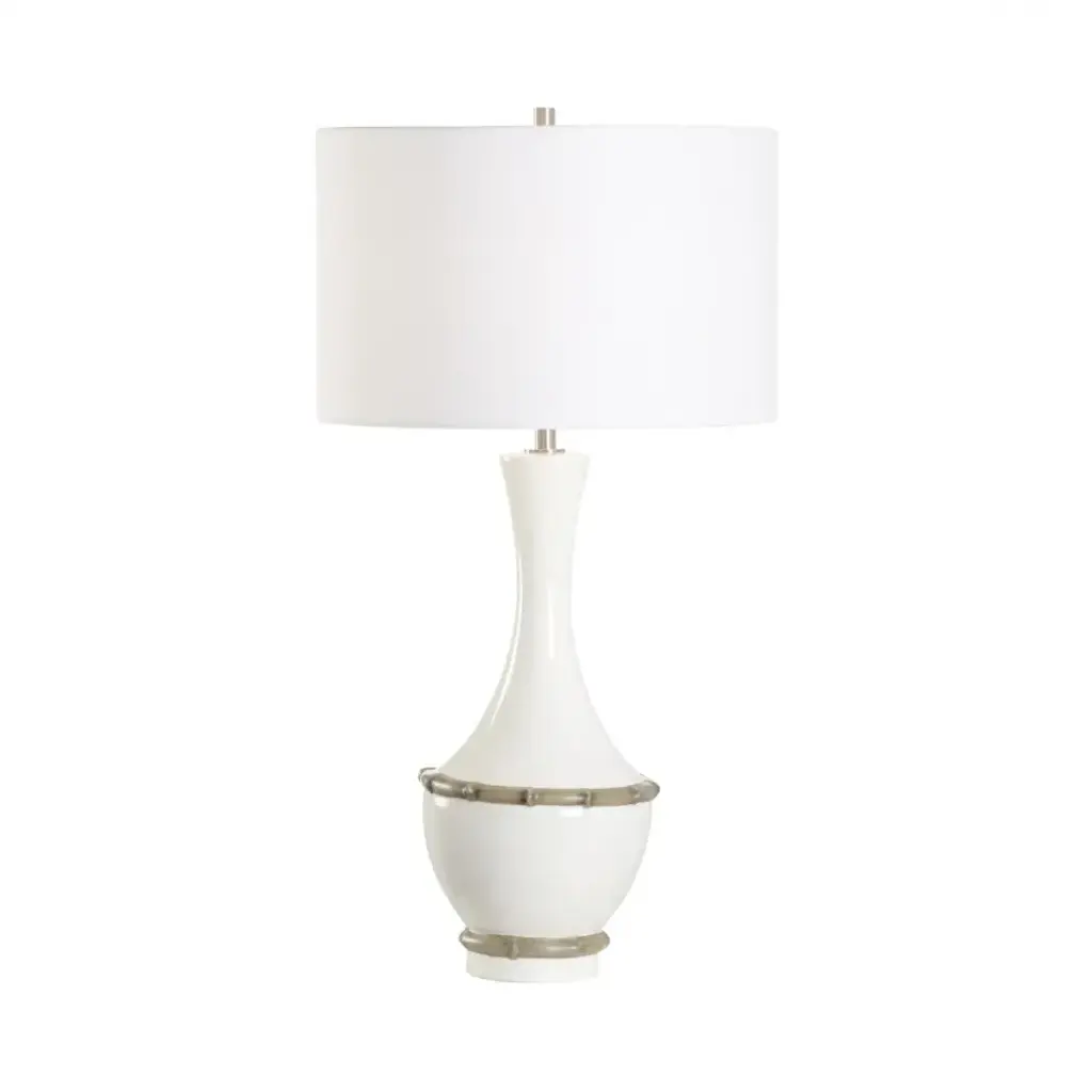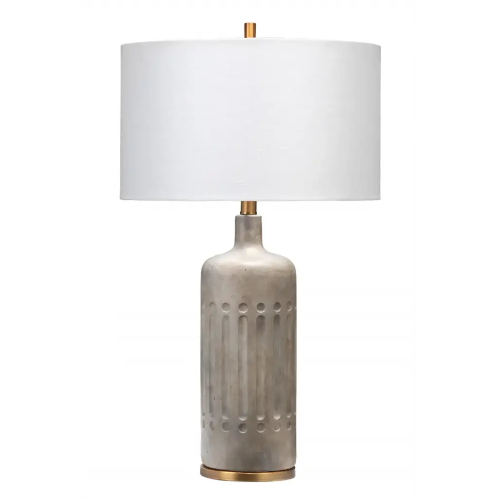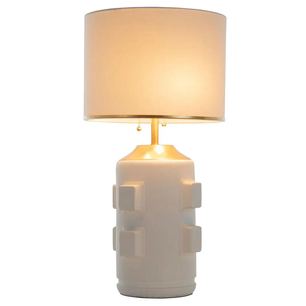 The Bridget Table Lamp captures the essence of mid-century modern design, reflecting a moment of daring experimentation with shapes. Its base, adorned with geometric detailing, is beautifully complemented by a finish at the top. This striking composition is crowned with a linen shade, perfectly proportioned to the lamp's bold silhouette. The Bridget Table Lamp adds a touch of retro sophistication to any space, blending seamlessly with both contemporary and classic decor.