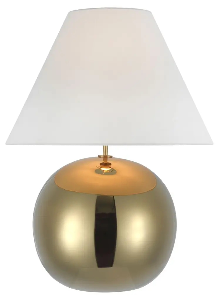Light up your home with the simple and elegant Brielle Large Table Lamp from Visual Comfort Signature. Designed by Kate Spade New York, this large table is defined by its spherical shape. Your table lamp is composed of fine metal brass and is crowned by a lovely linen shade. Inside of this shade is contained a brilliant LED which enhances the visibility of your surroundings.