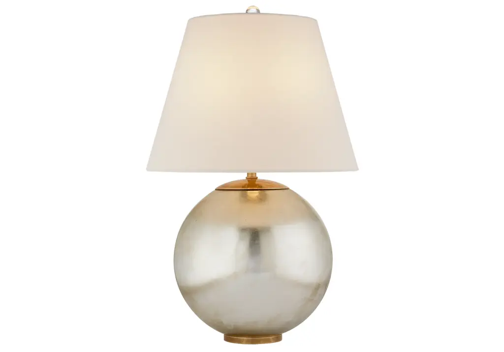 This table lamp is beautifully simple—and simply beautiful. From the round lustrous body rises a slender rod that supports a tapered linen shade. This lamp will feel at home in traditional and contemporary rooms alike.