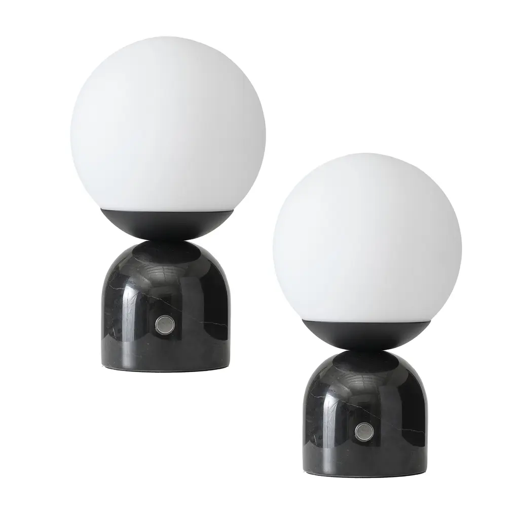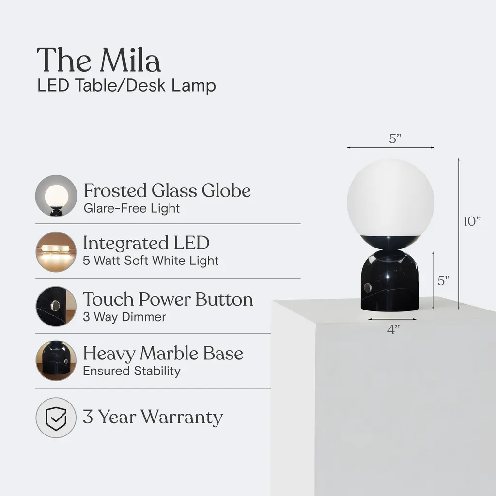 Get two of the Brightech Mila Table Lamps and light up your world! This bundle set of two modern table lamps is the perfect lighting solution for any space. Its unique and classy design is sure to spark conversations, while its warm, soft ambient light creates a cozy atmosphere in your living room, bedroom, office, den, or nursery. Crafted to complement various decors, including modern bohemian, mid-century modern, contemporary, vintage, and farmhouse styles, the Mila LED Table/Desk Lamp features a frosted glass globe shade, silver metallic accents, and a sleek cylindrical marble base. Its compact size makes it perfect as a bedside table lamp, bedroom nightstand lamp, office desk lamp, or living room side table lamp. With a 20-year lifespan, the energy-saving 5 Watt LED bulb delivers 450 lumens of 3,000K warm white light, outperforming traditional bulbs. Plus, we offer a 3-year quality guarantee, ensuring your satisfaction with this premium lamp set. Get two of the Brightech Mila Table Lamps and enjoy the value of getting two lamps for cheaper than purchasing two individually, while also enjoying the cozy atmosphere of warm, soft ambient light in your home!