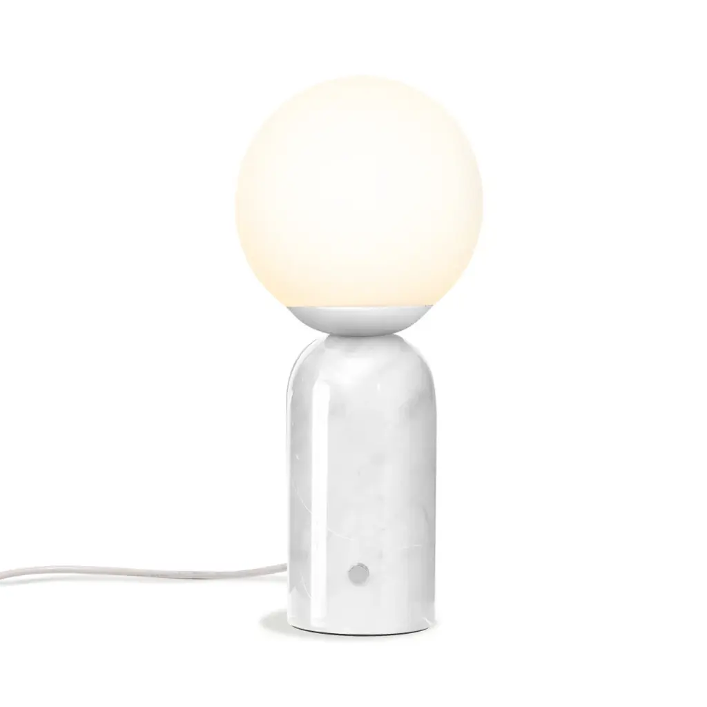 Brightech Mila Tall Table Lamp Glass Globe Shade Marble Base, White