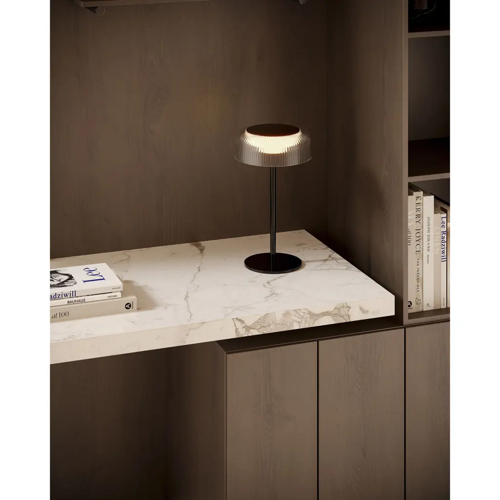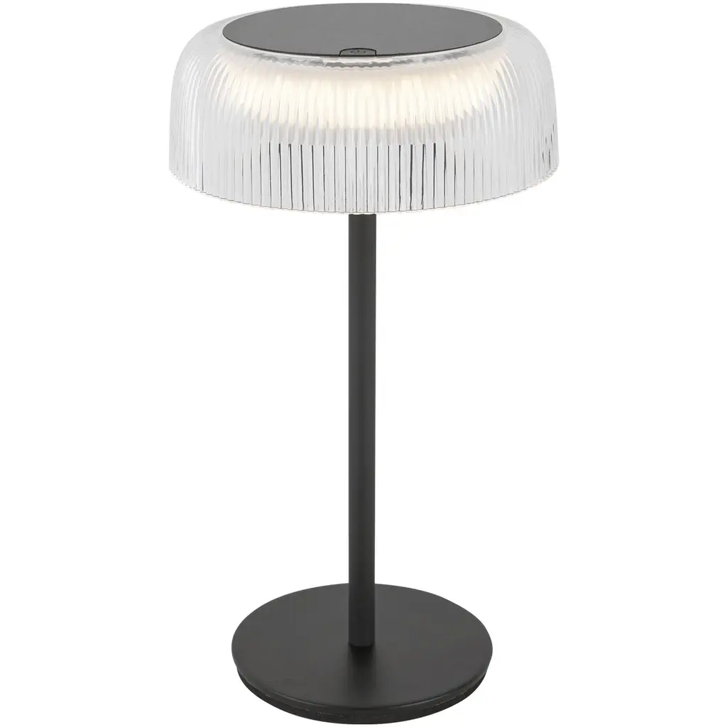 Brilla brings brilliance and convenience together seamlessly. Adorned with a ribbed acrylic shade reminiscent of glistening crystals, it exudes sophistication in every glow. Available with sleek black or white hardware accents, this rechargeable lamp is your versatile beacon of style.