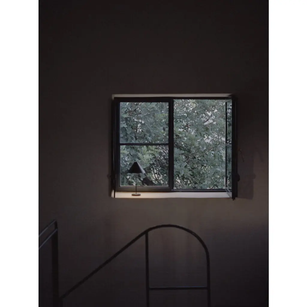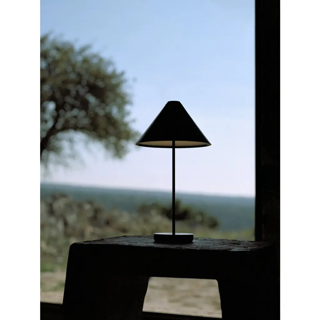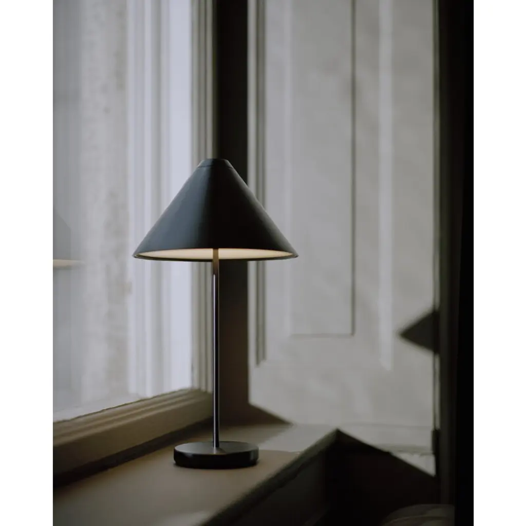 New Works' portable Brolly table lamp, designed by Knut Bendik Humlevik, pairs a delightfully classic esthetic with modern technology. Brolly's cone-shaped lampshade is supported by a slender metal stem, and the integrated and dimmable LED unit casts soft, glare-free light downwards. Thanks to its cordless design, the Brolly lamp can easily be placed wherever needed. It serves as a convenient reading light on a bedside table, sets a cozy ambience on a windowsill, or acts as an elegant table lamp even at the center of a dining table. On the top of the shade is a touch dimmer switch, which allows you to adjust the brightness in three levels. Brolly provides up to 15 hours of light on a single charge, and you can charge the portable lamp with its magnetic USB cable even when the light is on.