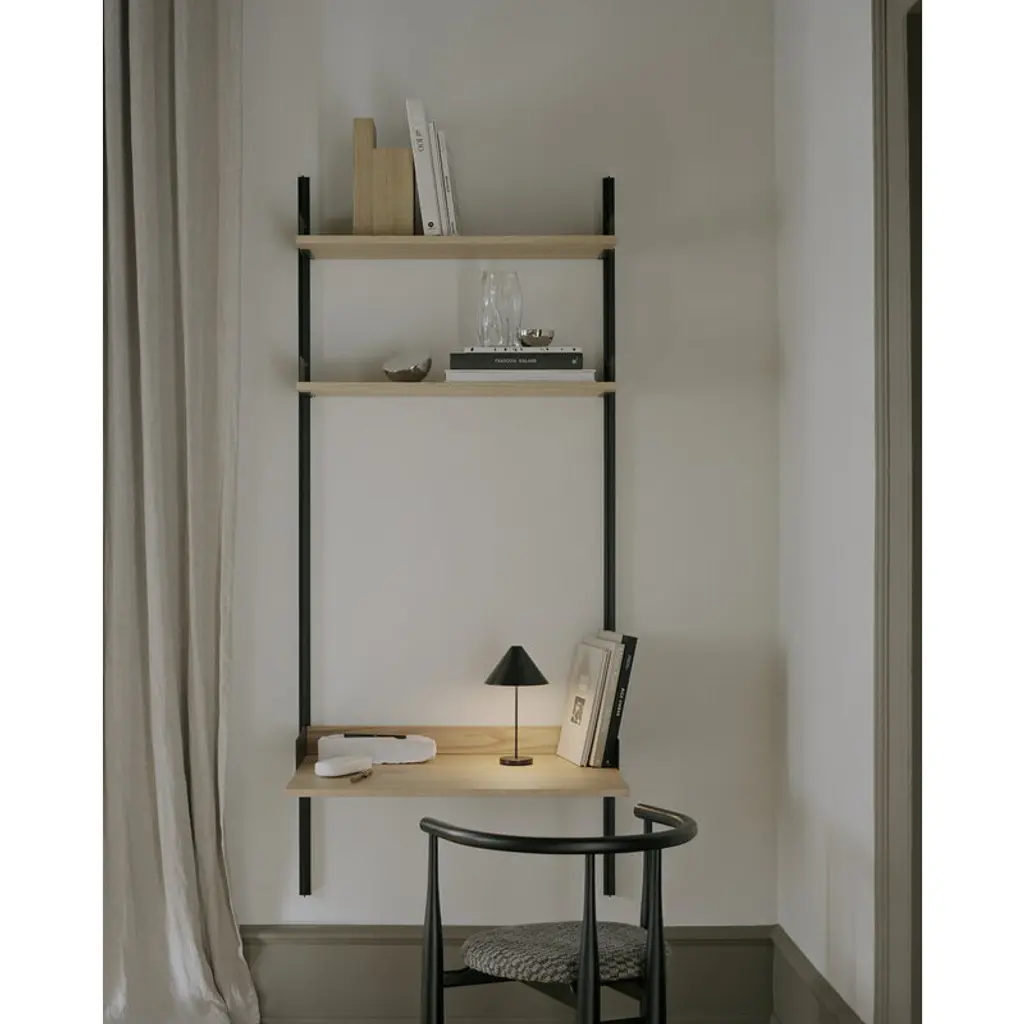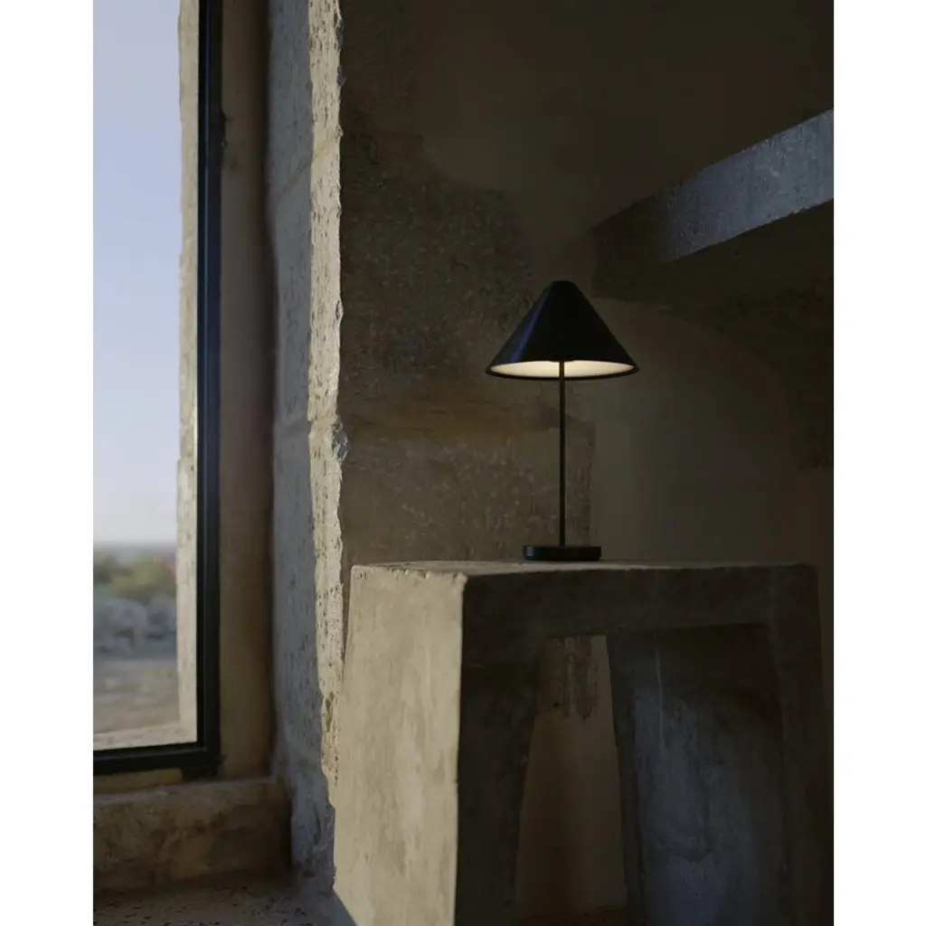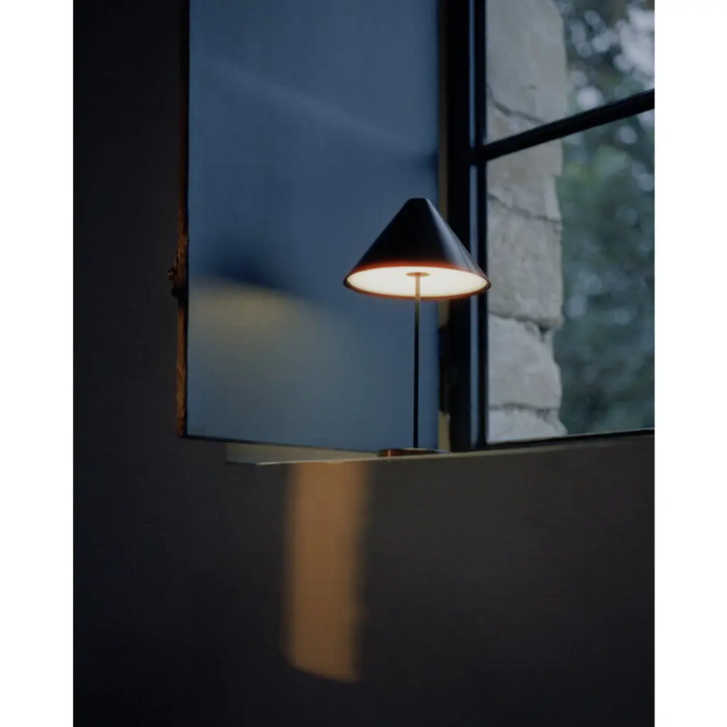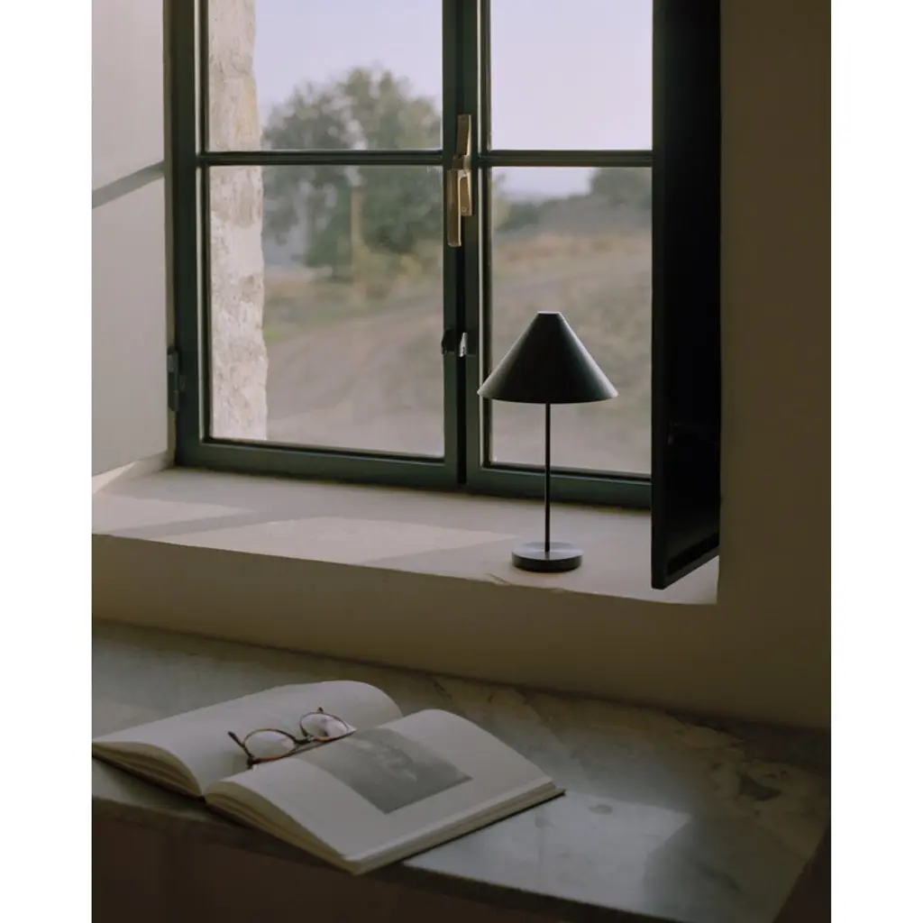 New Works' portable Brolly table lamp, designed by Knut Bendik Humlevik, pairs a delightfully classic esthetic with modern technology. Brolly's cone-shaped lampshade is supported by a slender metal stem, and the integrated and dimmable LED unit casts soft, glare-free light downwards. Thanks to its cordless design, the Brolly lamp can easily be placed wherever needed. It serves as a convenient reading light on a bedside table, sets a cozy ambience on a windowsill, or acts as an elegant table lamp even at the center of a dining table. On the top of the shade is a touch dimmer switch, which allows you to adjust the brightness in three levels. Brolly provides up to 15 hours of light on a single charge, and you can charge the portable lamp with its magnetic USB cable even when the light is on.