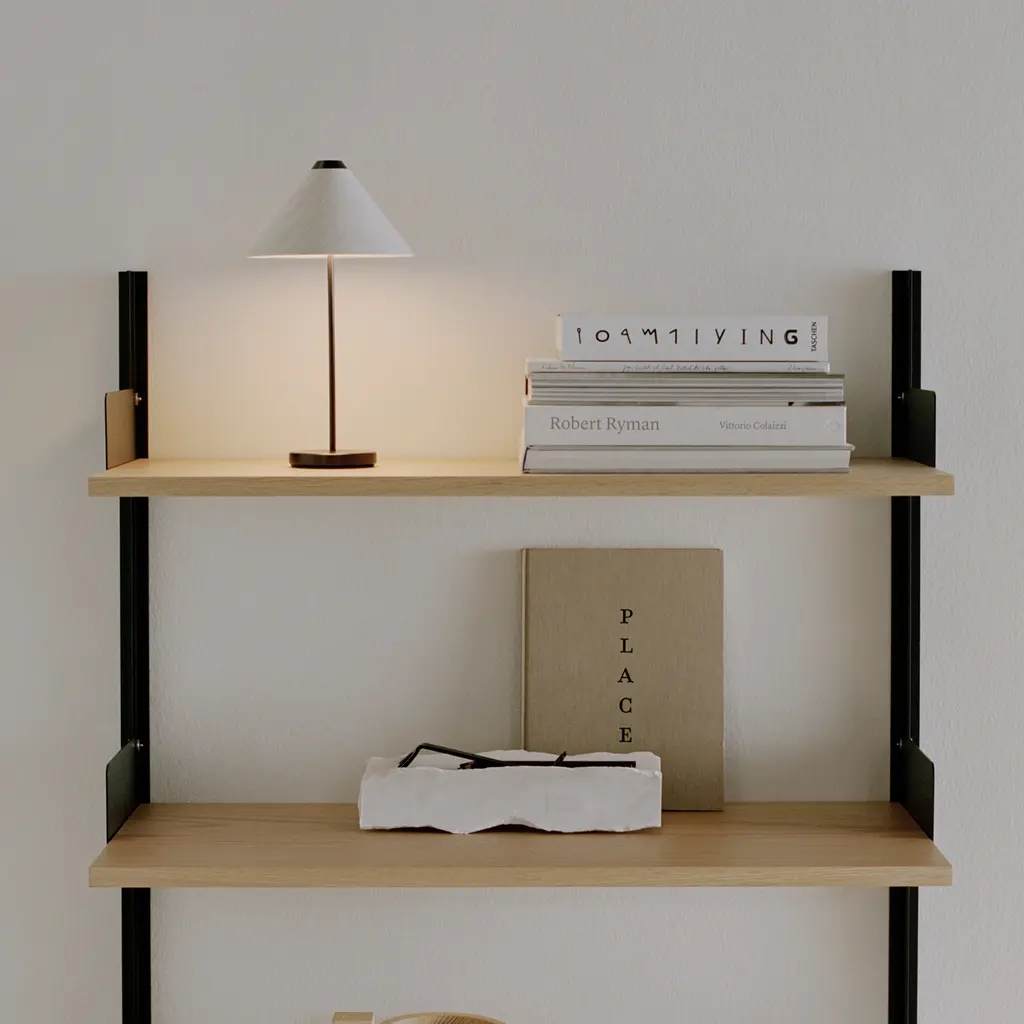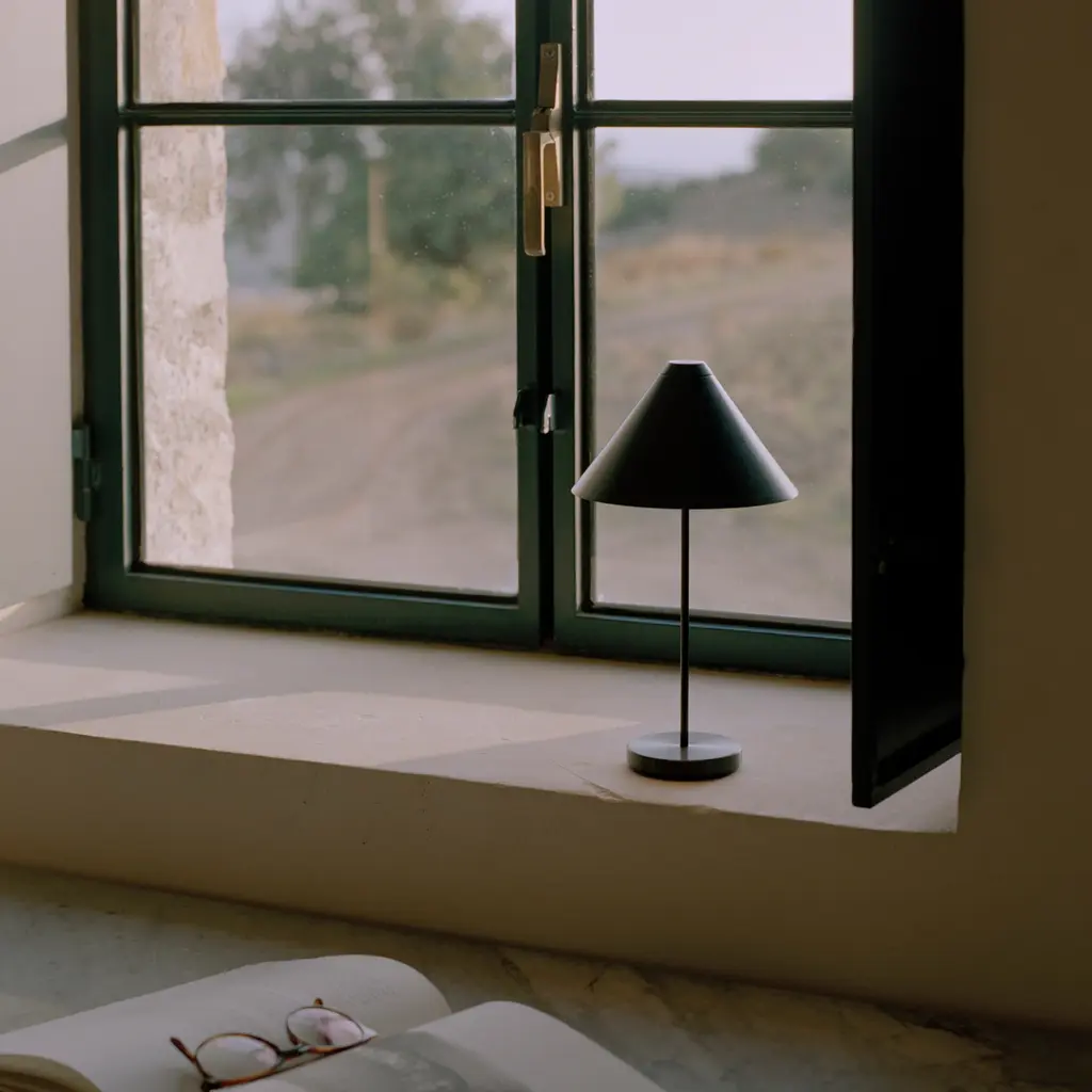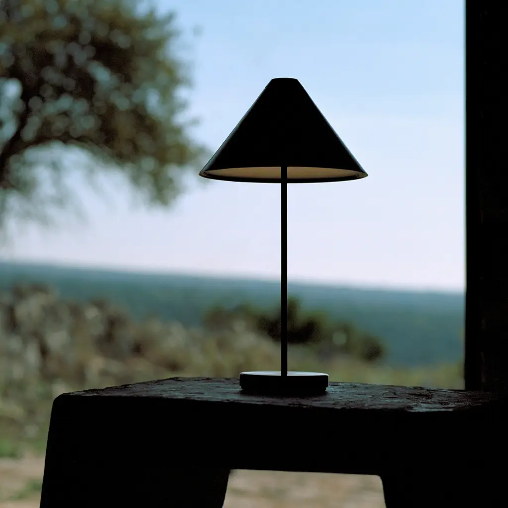 In brushed steel, the portable Brolly from New Works creative director Knut Bendik Humlevik has a thoughtful, almost deceptive, simplicity that makes it timeless . Equally straightforward are the magnetic charger that attaches seamlessly underneath the base for up to 15 hours of use and a 3-step dimmer at the peak of the lampshade.