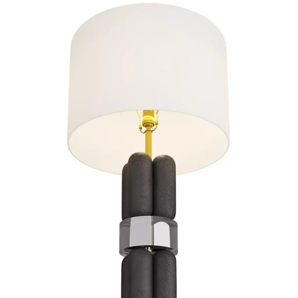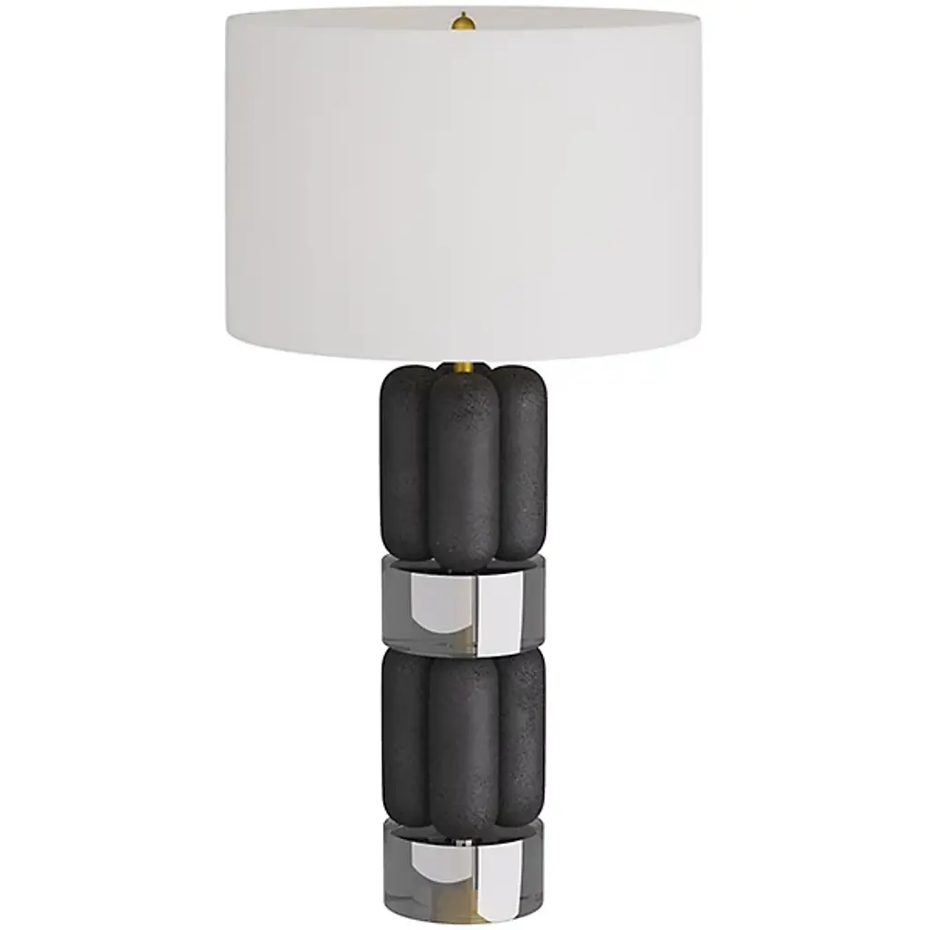 The Bronson Table Lamp from Arteriors is an exquisite lamp that boasts a pillar design crafted from rich ricestone and crystal materials, making a visual impact in your space. Crowned with a shade of white microfiber, Bronson casts an inviting glow, beautifully diffused by its brilliant LED. The 3-way socket switch offers convenience. Your lamp’s shade takes on a drum shape that completes its transitional aesthetic. This light fixture rests easily on your favorite table.
