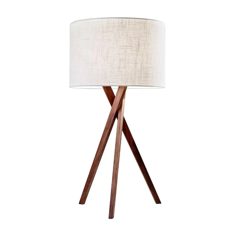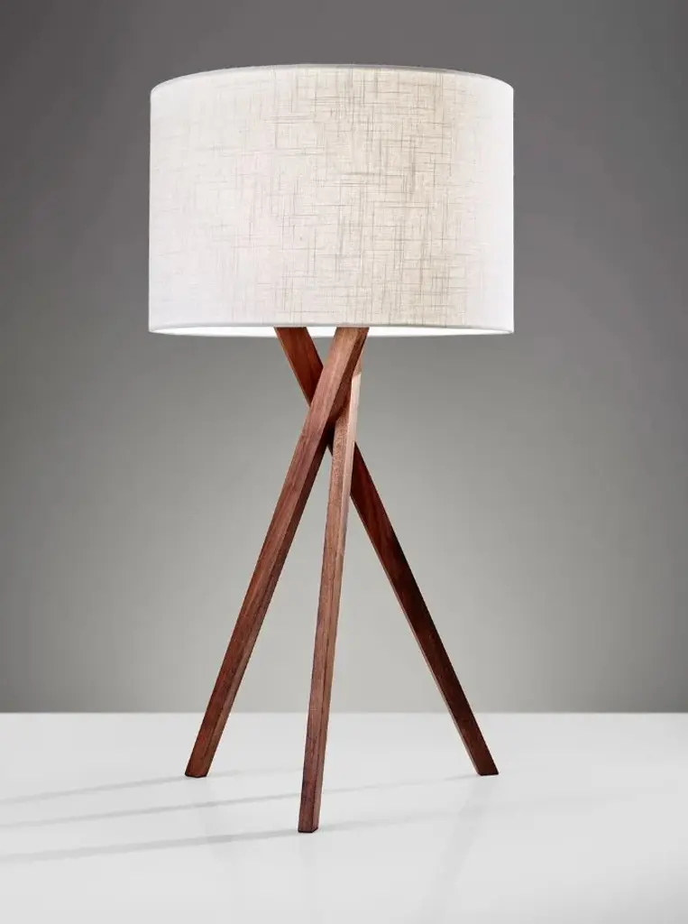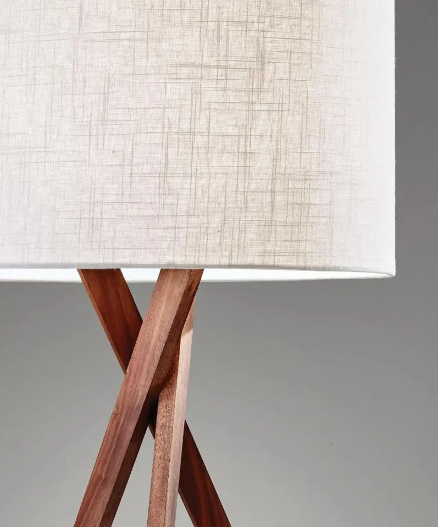 Sleek and contemporary with natural elements, is the best way to describe the Brooklyn Table Lamp. The base is made out of a beautiful walnut that is designed in a crisscross movement. The legs attach to a metal disc that supports the socket and white textured linen drum shade for easy assembly. A three-way rotary switch on the socket controls a bulb up to 100 Watts or an equivalent CFL. The 3-way rotary socket switch will only work with a 3-way light bulb, otherwise this lamp will function with simple on/off switch at its highest setting. This lamp is smart outlet compatible. Bulb is not included.