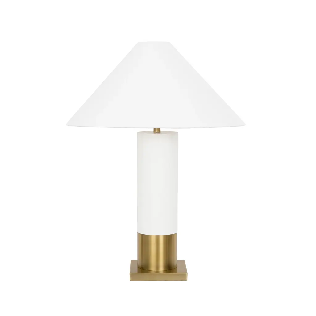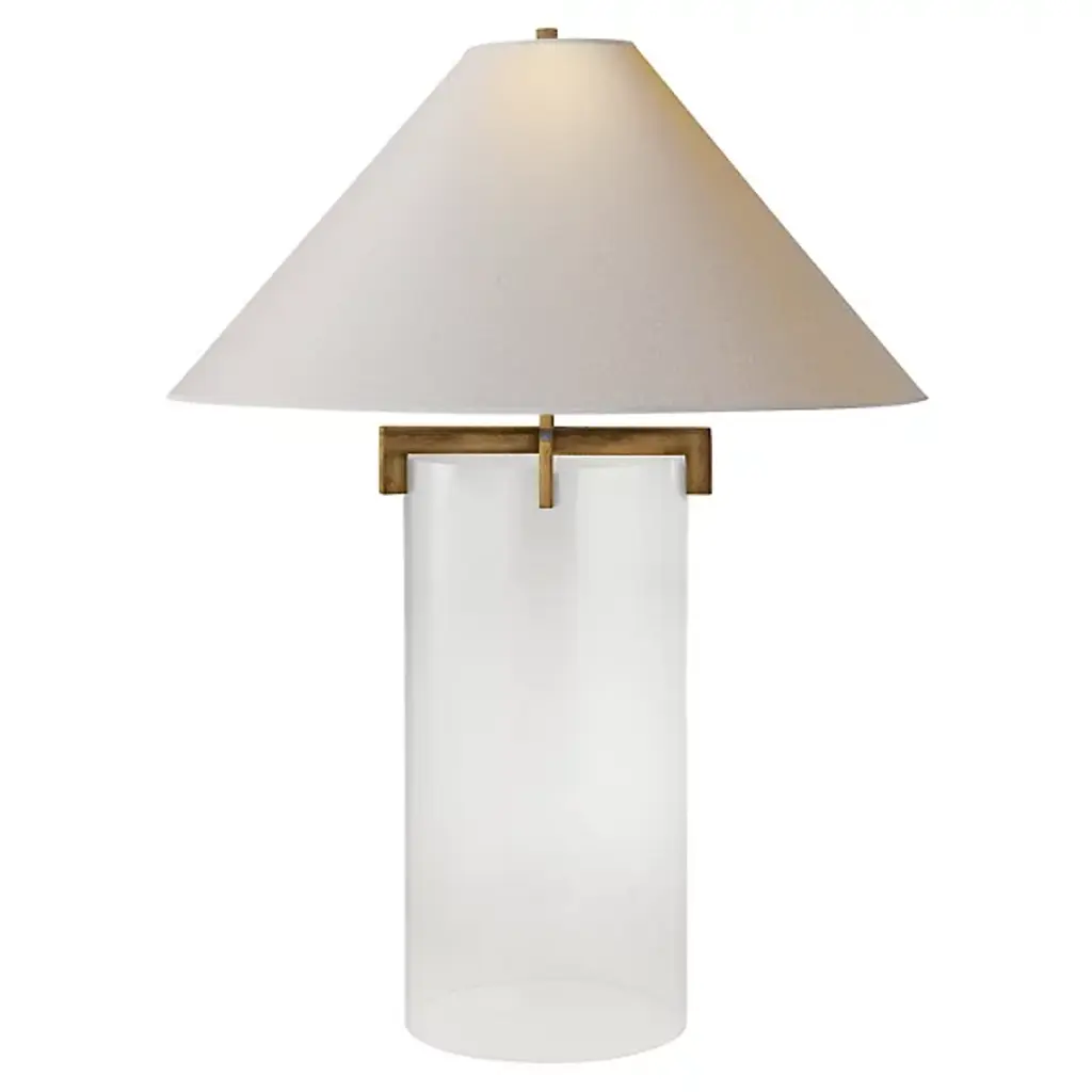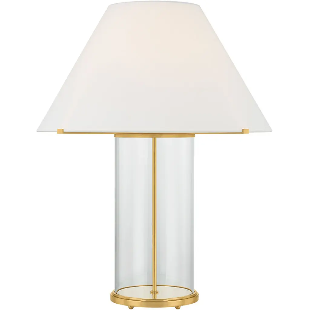 The Brooks Table Lamp by Visual Comfort Signature, formerly known as Visual Comfort, will bring a subtle sense of minimalist refinement to your space. Featuring a cylindrical Crystal body capped with detailed hardware that offers contrast and supports the strongly tapered shade above, this fixture diffuses ample light to surrounding space. French wired with Hi-Lo switch at socket. Designed by J. Randall Powers.