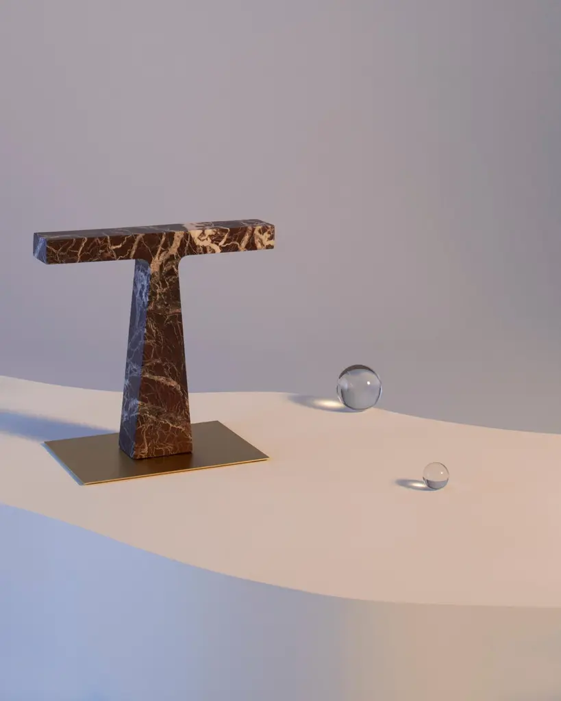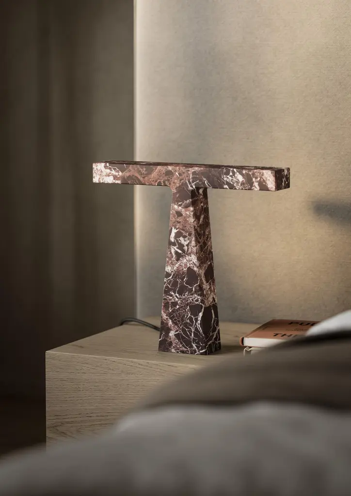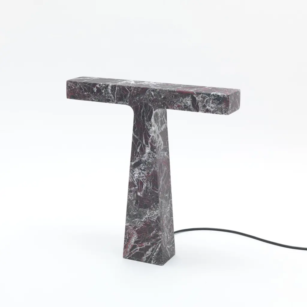 Bruchi marble table lamp by Niko Koronis.Dimensions: W 37.5 x D 7 x H 35.Materials: Rosso Levanto.Also Available: Verde Guatemala.All our lamps can be wired according to each country. If sold to the USA it will be wired for the USA for instance.Living matter that becomes a vehicle, “Bruchi” is the result of a total aesthetic subtraction – no superfluous decorations, an archaic shape for an abstract light.Niko Koronis graduated in architecture from the Welsh School of Architecture, where a year later he did his Master degree in Environmental Design of Buildings. He then moved to Milan, where he attended Domus Academy and obtained the Master in Design with distinction. He spent a year as the Master’s Design Tutor, after which he studied for his Phd in Architecture at the Architectural Association in London. He has been a Fellow at Central Saint Martins and a researcher at the Alvar Aalto Foundation in Helsinki. He has taught, lectured and undertaken research in architecture, urban and product design in several universities throughout the world and has taken part in several exhibitions, amongst which the Venice Biennale and the Triennale di Milano.
