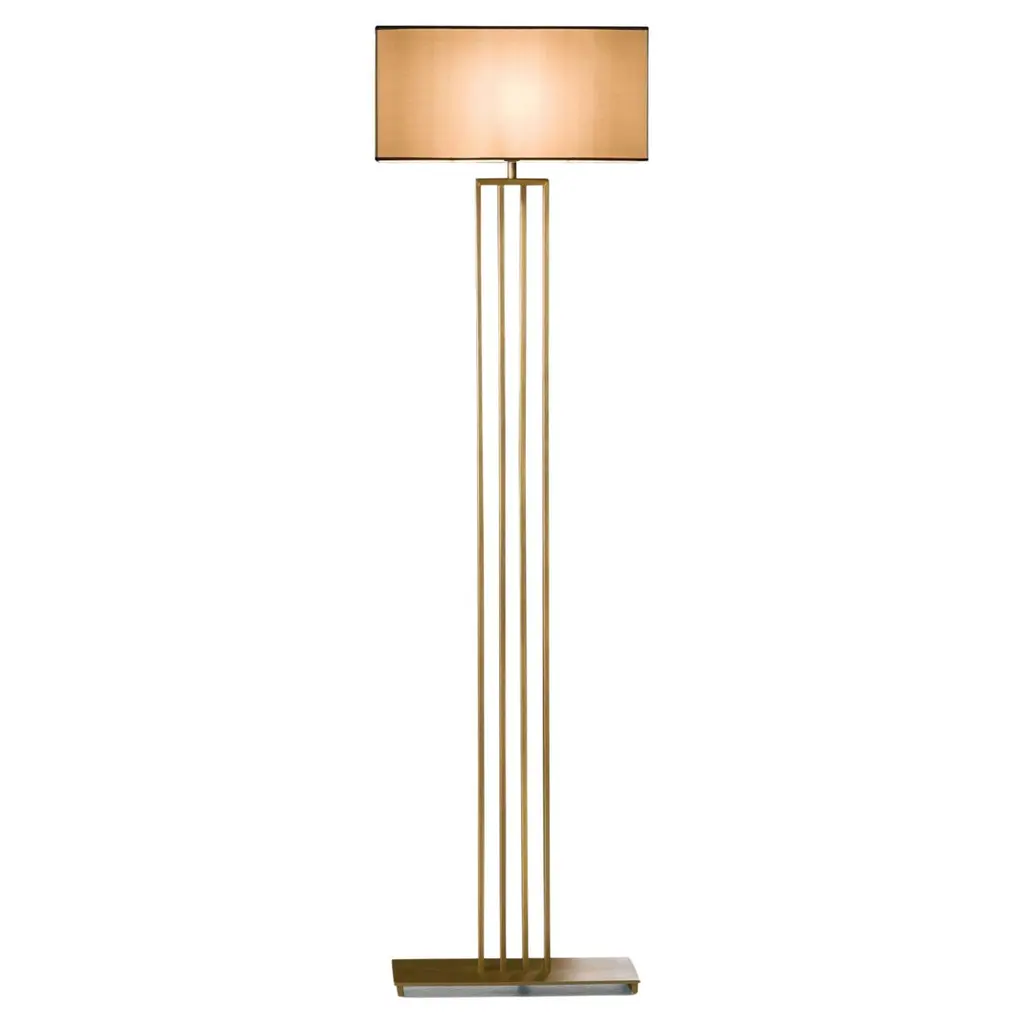 Infused with Trento glamour, this eye-catching lamp brings a styled elegance for a signature console or glamorous bedside. Stacked rounded rectangles of alternating size in a brushed brass finish provide a delicate, intricate look. The gilt lined shade creates a wonderfully warm ambience.