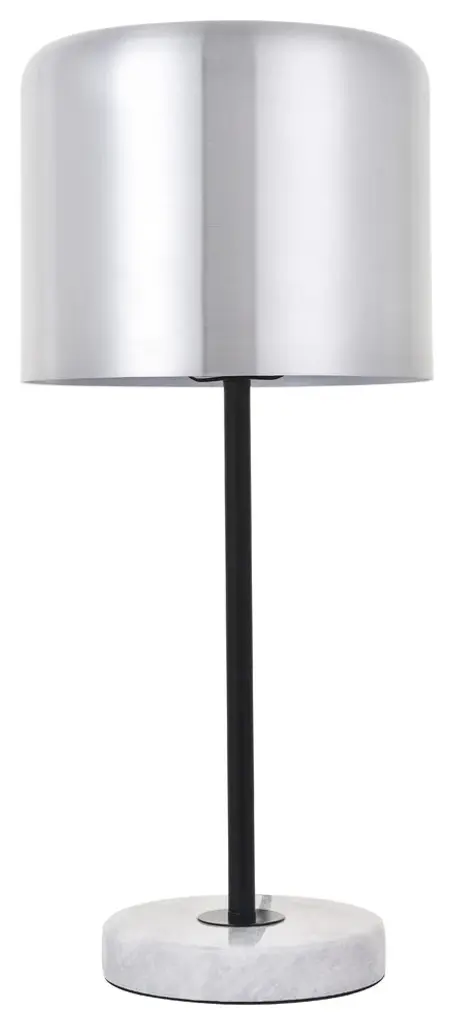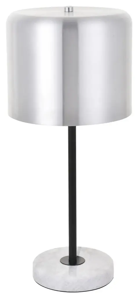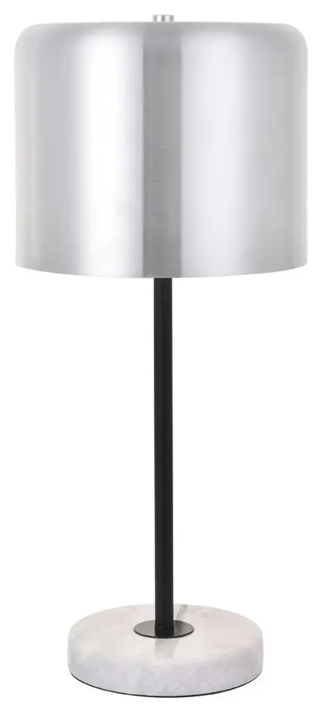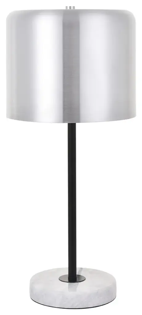 The brushed nickel finish metal cylindrical shade with a white finish interior table lamp is confident in its modest contemporary style. The luxurious white marble base elevates it from pure simplicity to refined luxe, and its versatile simplicity makes it easy to accent various d_cor whether it''s on your side table in the living room or illuminating your office.Wattage: 40Bulb Type: E26Number of Bulbs Required: 1Bulbs Included?: No