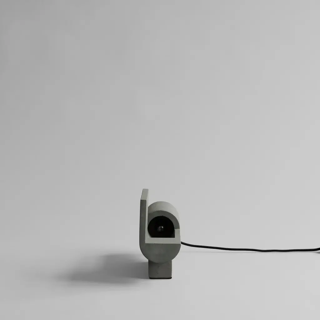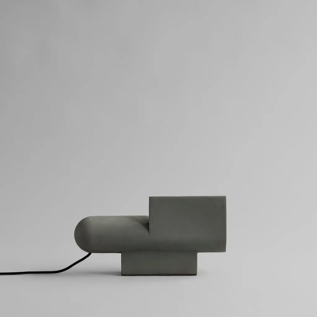 Brutalist lamp by 101 CopenhagenDesigned by Kristian Sofus Hansen & Tommy Hyldahl.Dimensions: L 40 x W 10 x H 21 cmCable length: 200 CMThis product is not wired for USAMaterials: Material: ConcreteCable: Fabric covered cable / BlackBrutalist is a sculptural table lamp made from cast lightweight concrete with a hidden light source.The lamp is named after the architectural style Brutalism, and is inspired by architectural masterpieces by Le Corbusier and Frank Lloyd Wright. Brutalist consists of merged geometric shapes, where the composition of elements reflects the need to both hide and maximize the light source.The contrasting concrete material creates a nuanced surface, which beautifully reflects the adjustable light source.101 Copenhagen is a Danish design brand founded in 2017. With a vision to honor exquisite quality and craftsmanship, the collection encompasses furniture, lighting and accessories in a timeless, yet modern design. With a true passion for materials and refined textures, organic shapes and colours, 101 Copenhagen presents the epitome of classics and must-have novelties for Scandinavian and international interior connoisseurs alike.