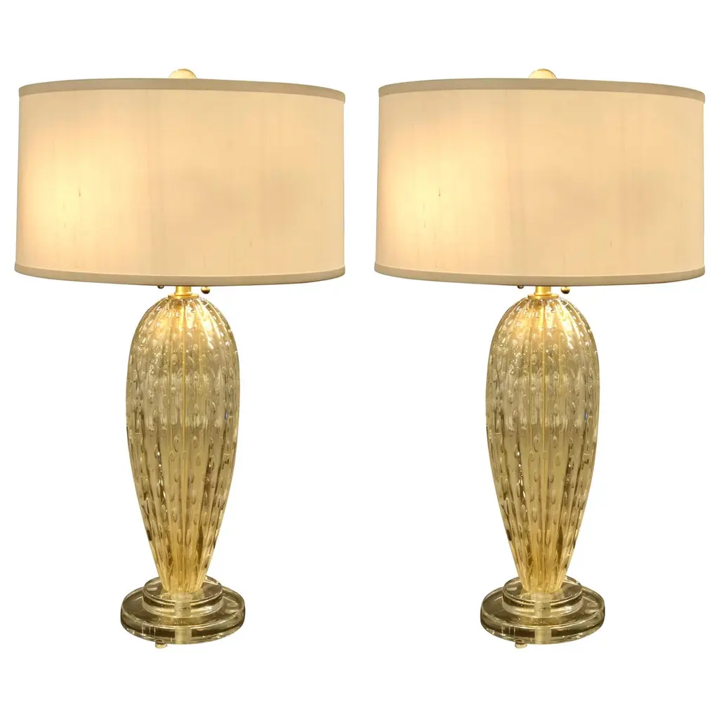 Such beautiful sculptures, in wonderful shades of BUTTERSCOTCH. These Bubble Lamps were created by Silvano Pantani, and imported from Italy in 1966. First time available for sale since they were shipped to the USA from Italy in 1966.The lamps are 21 inches tall from tabletop to socket top. As shown, the top of shade is 27 inches high. Lampshades are for display only and not available for sale.