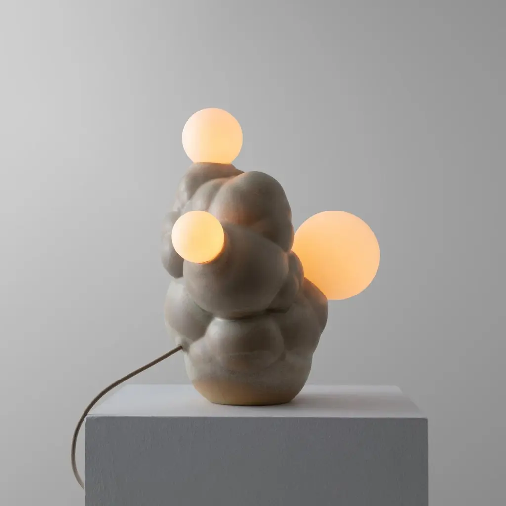 Our bubbly lamp is digitally grown to imitate the fractal growth of botryoidal crystals in Nature. Hand crafted by artisans in Peru with unique custom glazes, the lamp features three bulbs at 6in, 4in and 3in, all fully dimmable with a custom brass dimmer knob. This Bubbly Lamp also features a custom engraved brass plate at the base with the unique edition number. 120V and Type A Plug. Customizable, please inquire if interested. Available in 3 different colorways, visit the collection to see the full assortment.