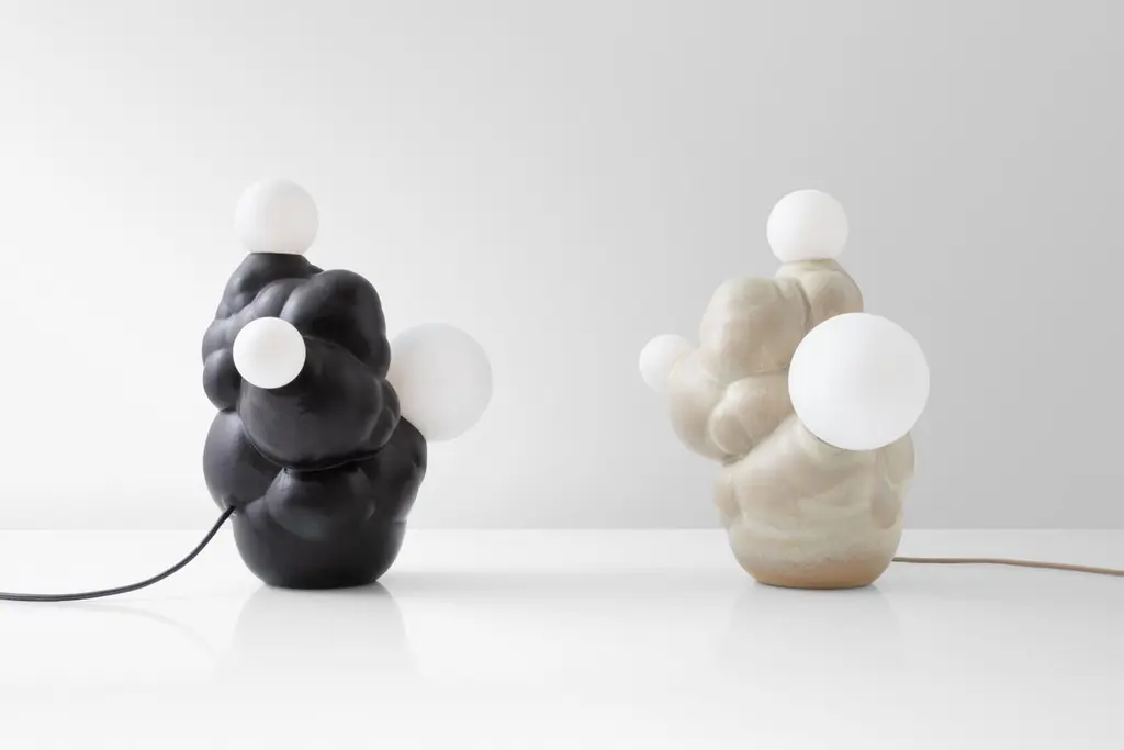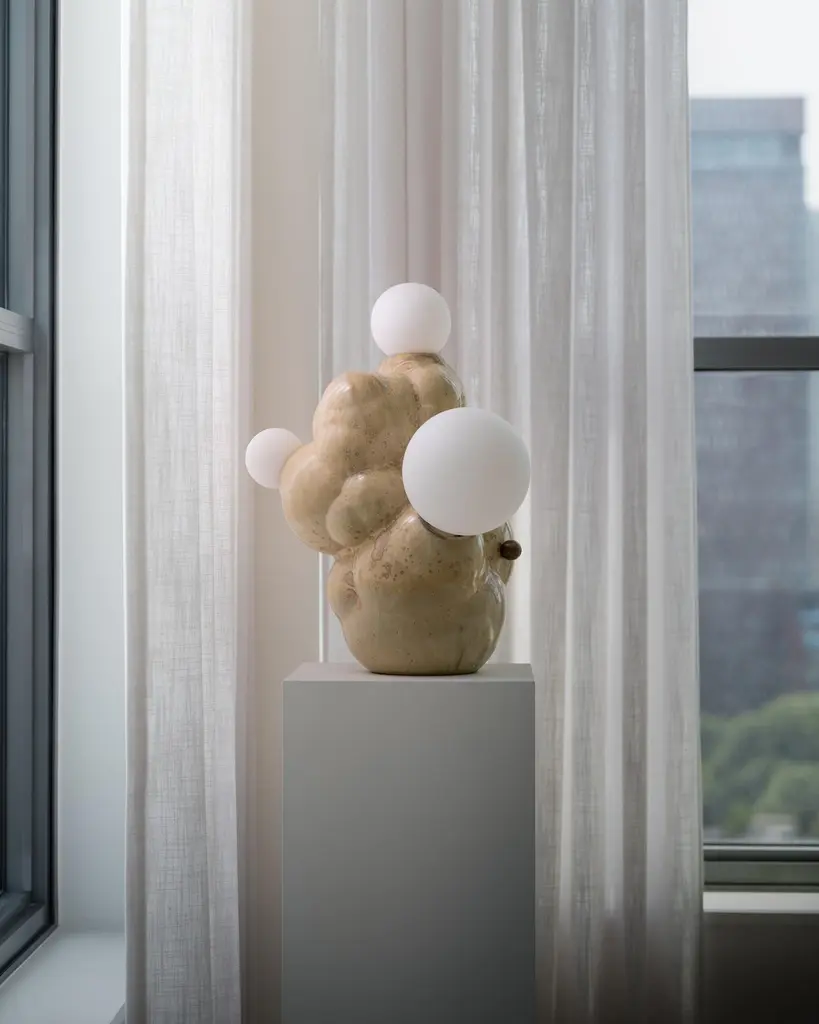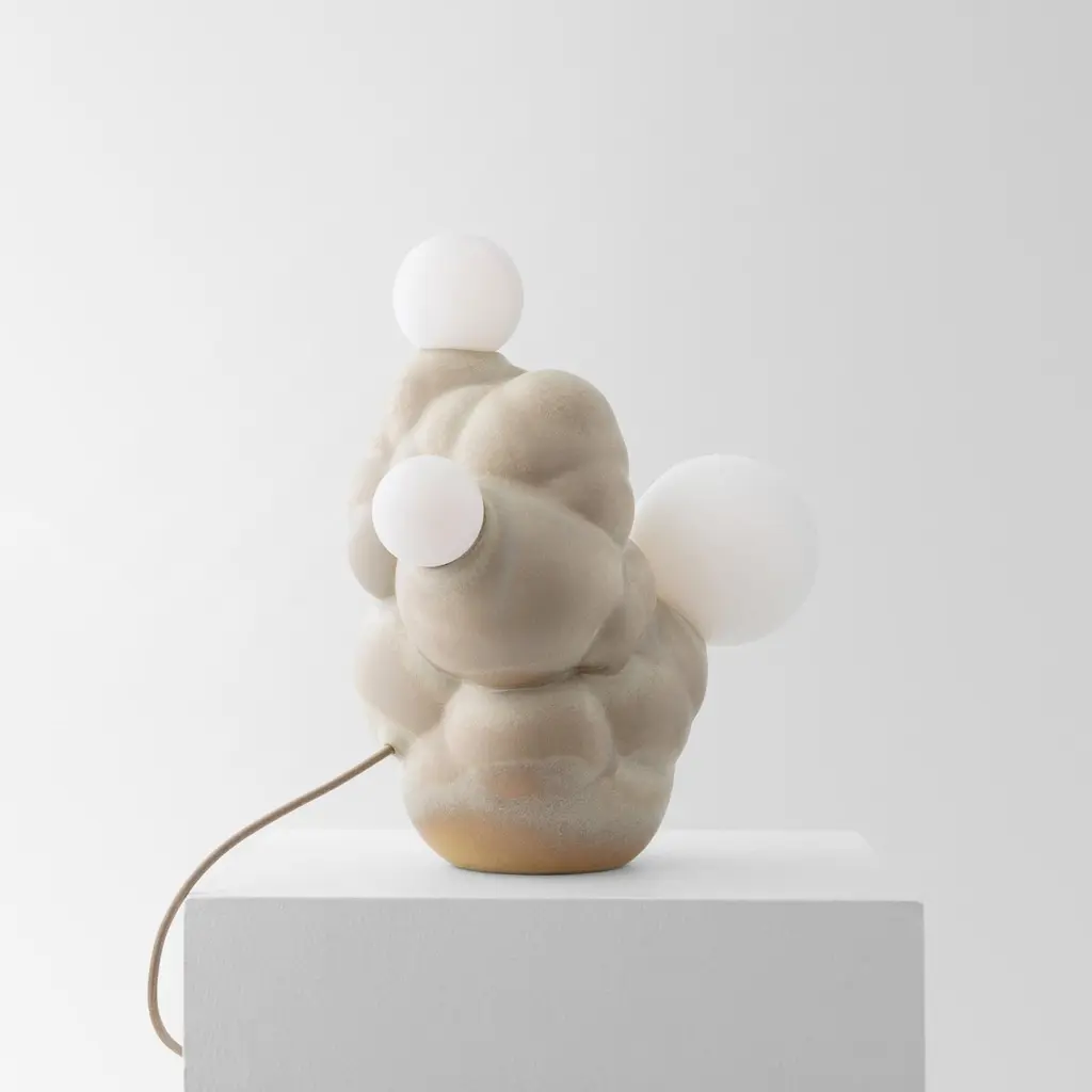 Bubbly Botryoidal Ceramic Table Lamp In Cream Custom Glaze By Forma Rosa Studio