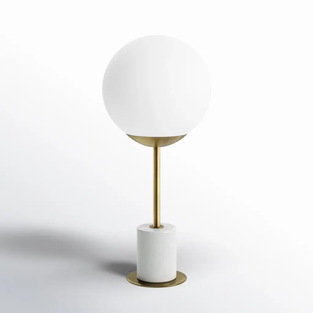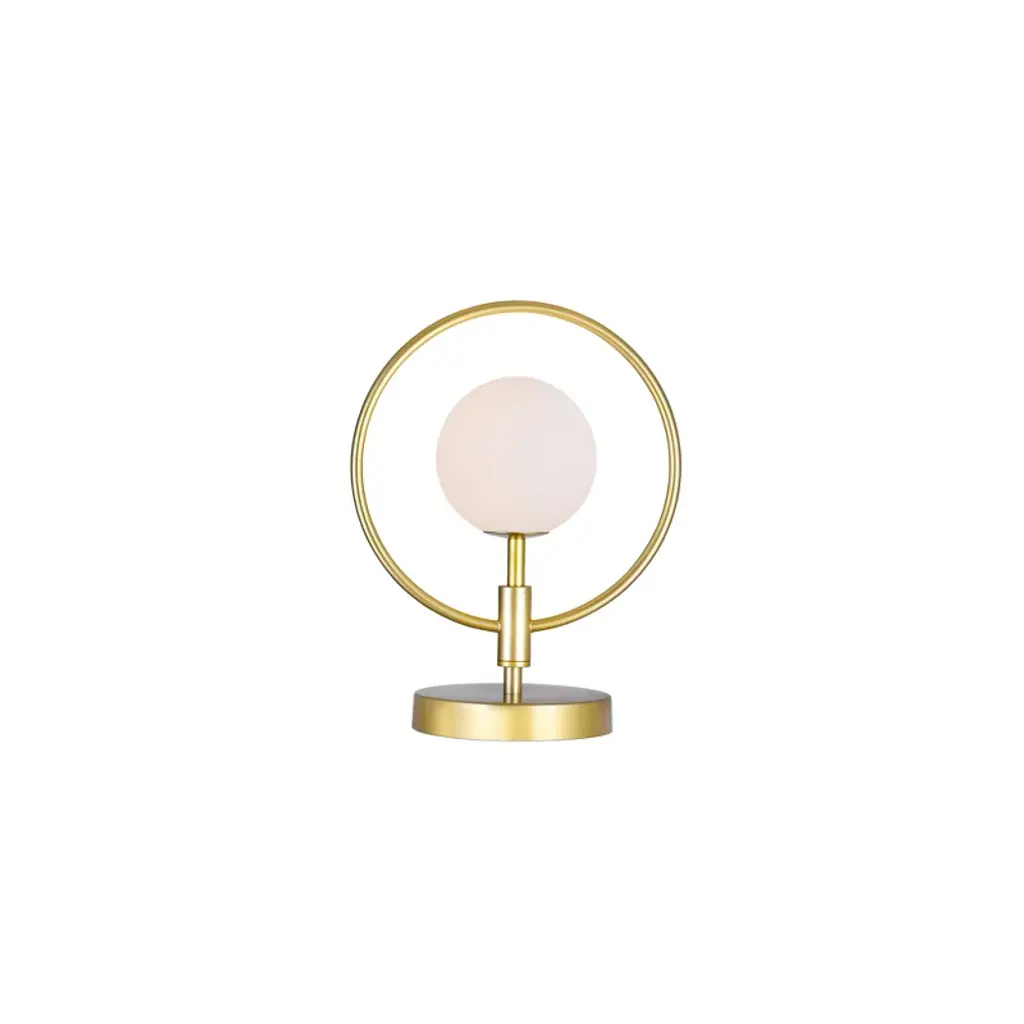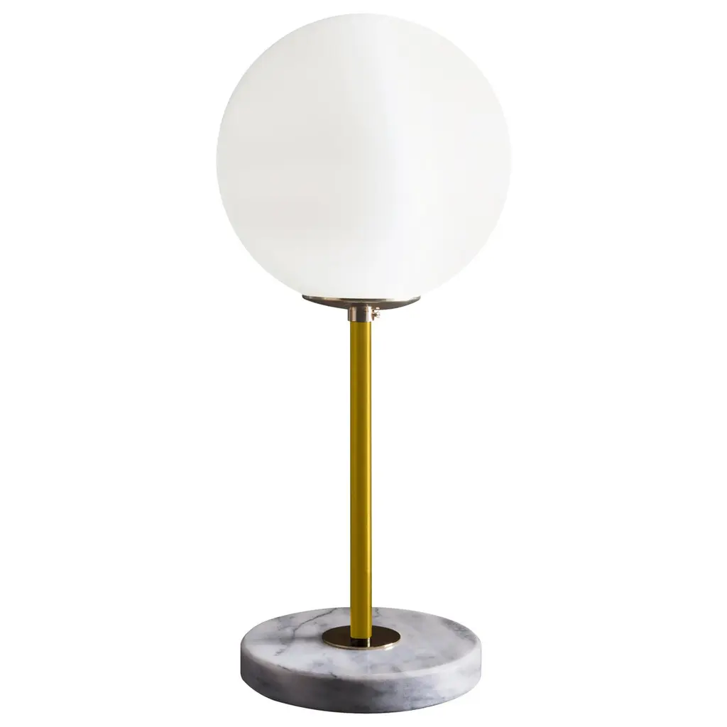 Table lamp from the BUBLE collection in steel (steel or brushed gold finish and bronze detail) with 2 opaline blown glass spheres. Lamp equipped with Dimmer.Light source: G9, Power: 2x10W LED - DIMMA frame with a view onto our dynamic lifestyles. Toughness and liveliness coexist, with the stiff and squared frame containing and supporting BUBLE, a series of opal glass bubbles, in multiple sizes and positions. The asymmetric lights articulate the space, with their proportions giving it balance, and the assembly making BUBLE fascinating and timeless.