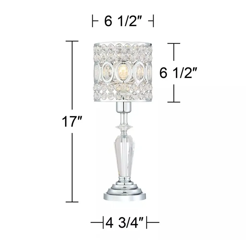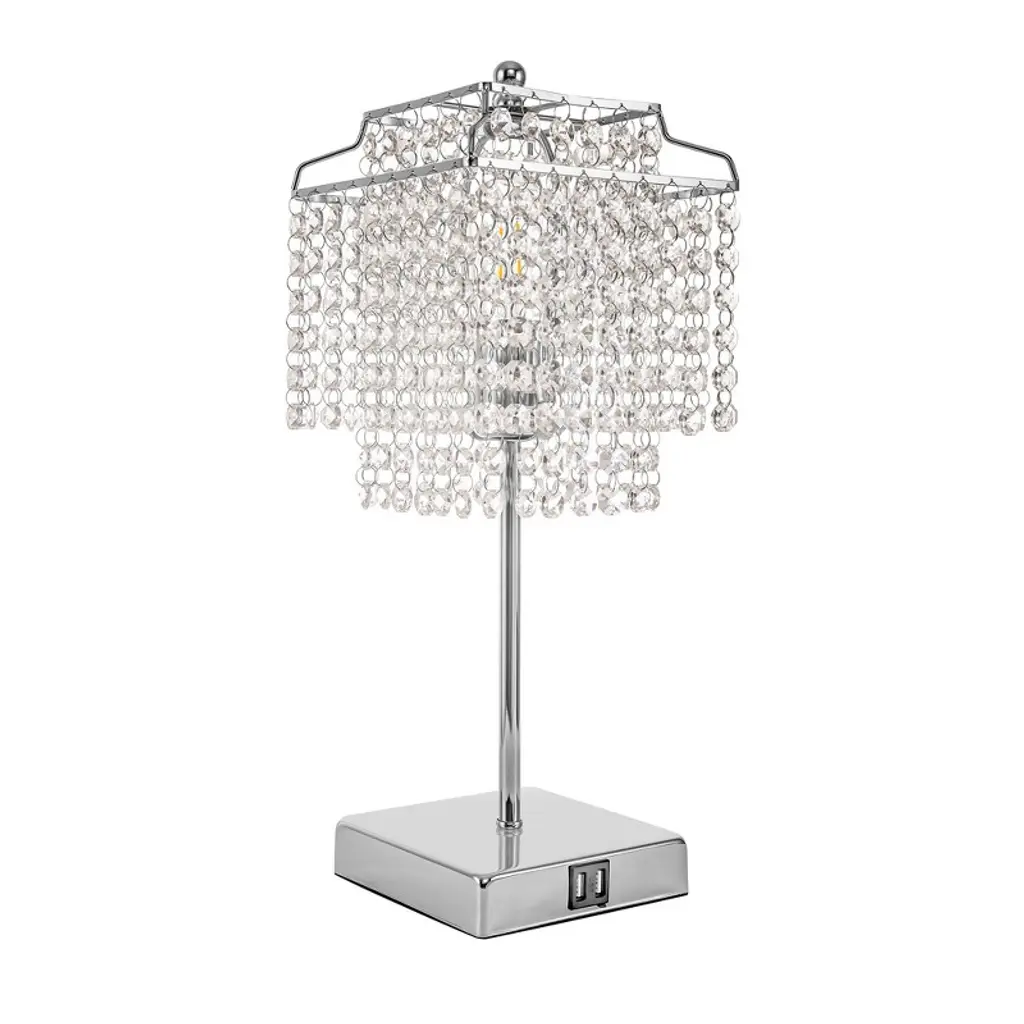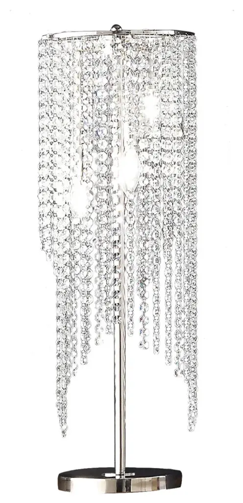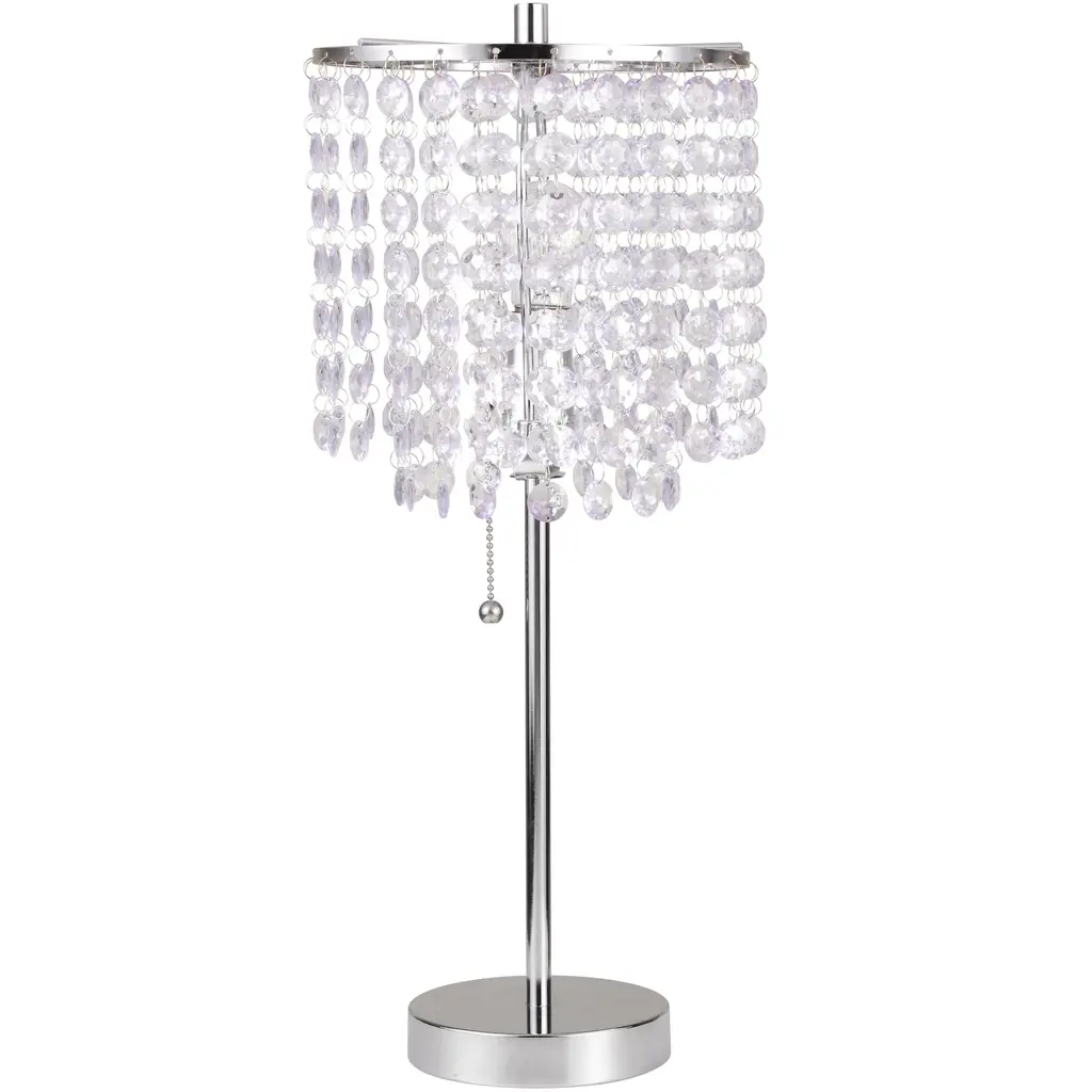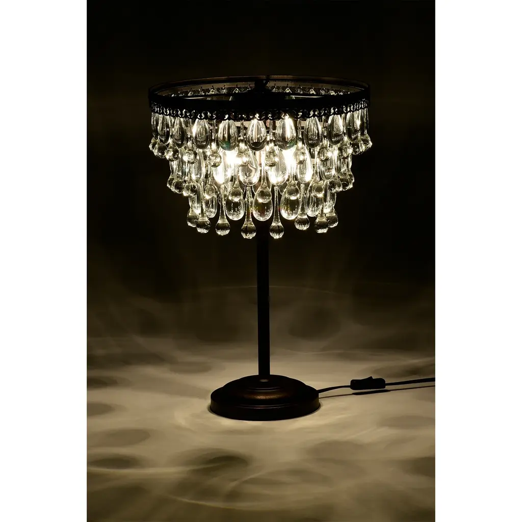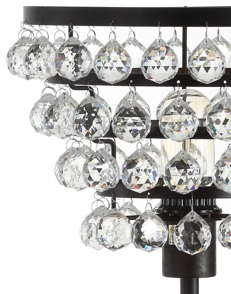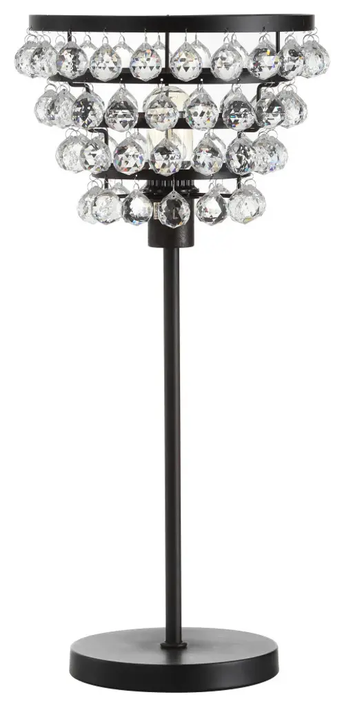 Equivalently glamorous and industrial, this table lamp shines with its faceted clear beads and bronze frame. Included is a 60W Edison Bulb which adds old-fashion charm and a warm glow to its contemporary stylings, making it an eclectic piece to add to any space. We love a pair of them on nightstands or atop a sideboard, but each lamp is sold individually. -Industrial glamour defines this tiered crystal chandelier table lamp -Beautiful to display or easy to conceal: the 60" cord is silk-wrapped-Takes one maximum 60 watt or equivalent bulb (one incandescent Edison bulb included)-On-off in-line switch-25W Edison bulb included-UL Listed-0-Color: Bronze / Clear-Body Material: Crystal / Metal-Base Material: Iron-Finial Material: N/A-Finial Color: N/A-Harp Color: N/A-Includes: 1 lamp(s)-Minor Assembly Required-Lamp: 25 inches high x 12 inches wide x 12 inches deep-You see a lamp.We see a decorative work of art.A perfectly curved shade casts a dramatic shadow on a floor. A silk cord you never want to hide. LED lightbulbs: as easy on the environment as they are on the eyes. The JONATHAN Y Lighting collection considers every detail from impeccably sourced materials to designer styling. And our prices are so attractive, we''ve transformed a functional necessity into a fashion accessory.JONATHAN Y Lighting - a fashion revolution in home decor.