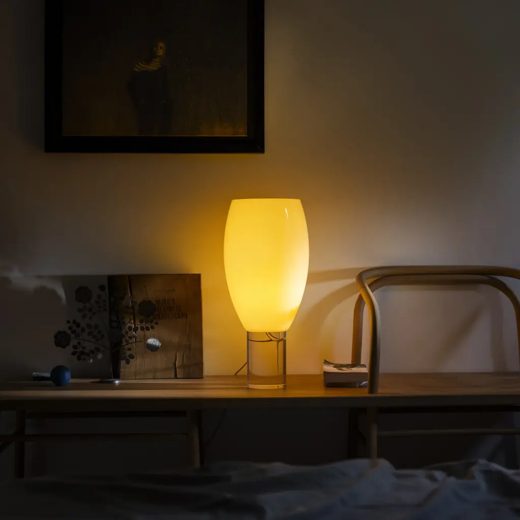 In the 1990s, Rodolfo Dordoni designed a collection of table, floor and suspension lamps for Foscarini in brightly colored blown glass, named after the natural elements: Fruits, Blossom and Buds. Today, Buds has been restyled again, interpreting contemporary taste with a sophisticated wealth and focus on materials. The star of the design remains blown-glass, with a five-layer hand-crafted process, which is immediately evident thanks to the larger cut of the diffuser. Features