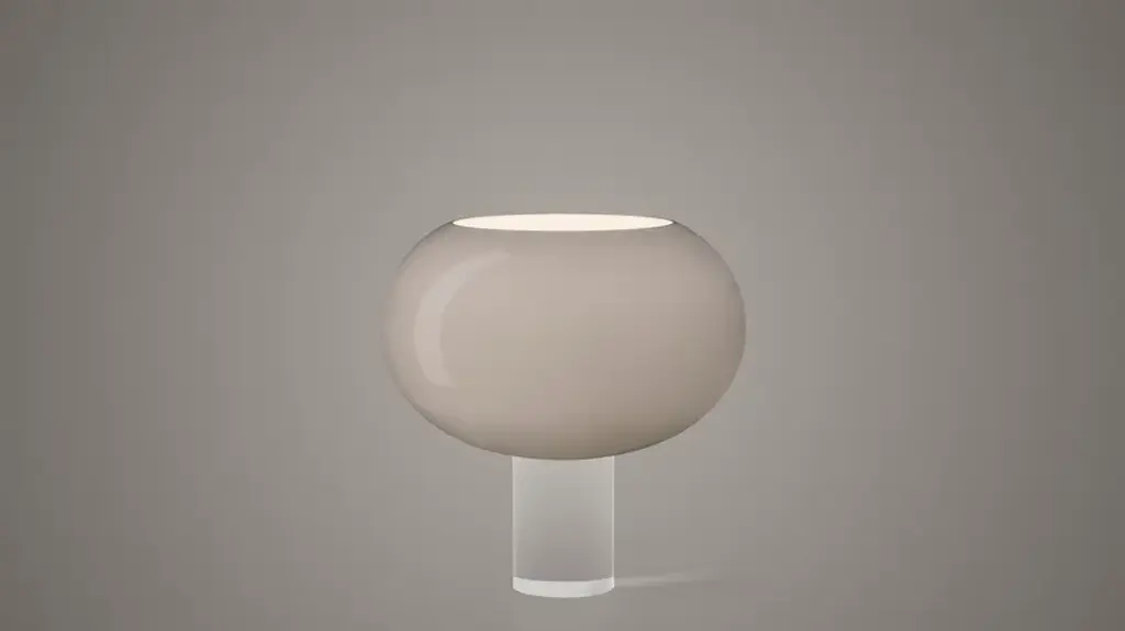 Buds 2 is a table lamp made of blown glass and PMMA.LIGHT SOURCE220/240VLED retrofit, Fluo23W E27Not dimmableIP 20Bulb not includedThe most striking feature is the diffuser in handmade blown glass with five layers, adding a touch of elegance and refinement. Thanks to the range of colours, the lamp plays a dual role: warm when on, cool when off.