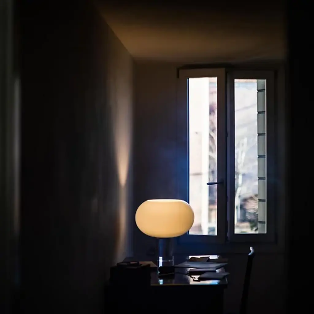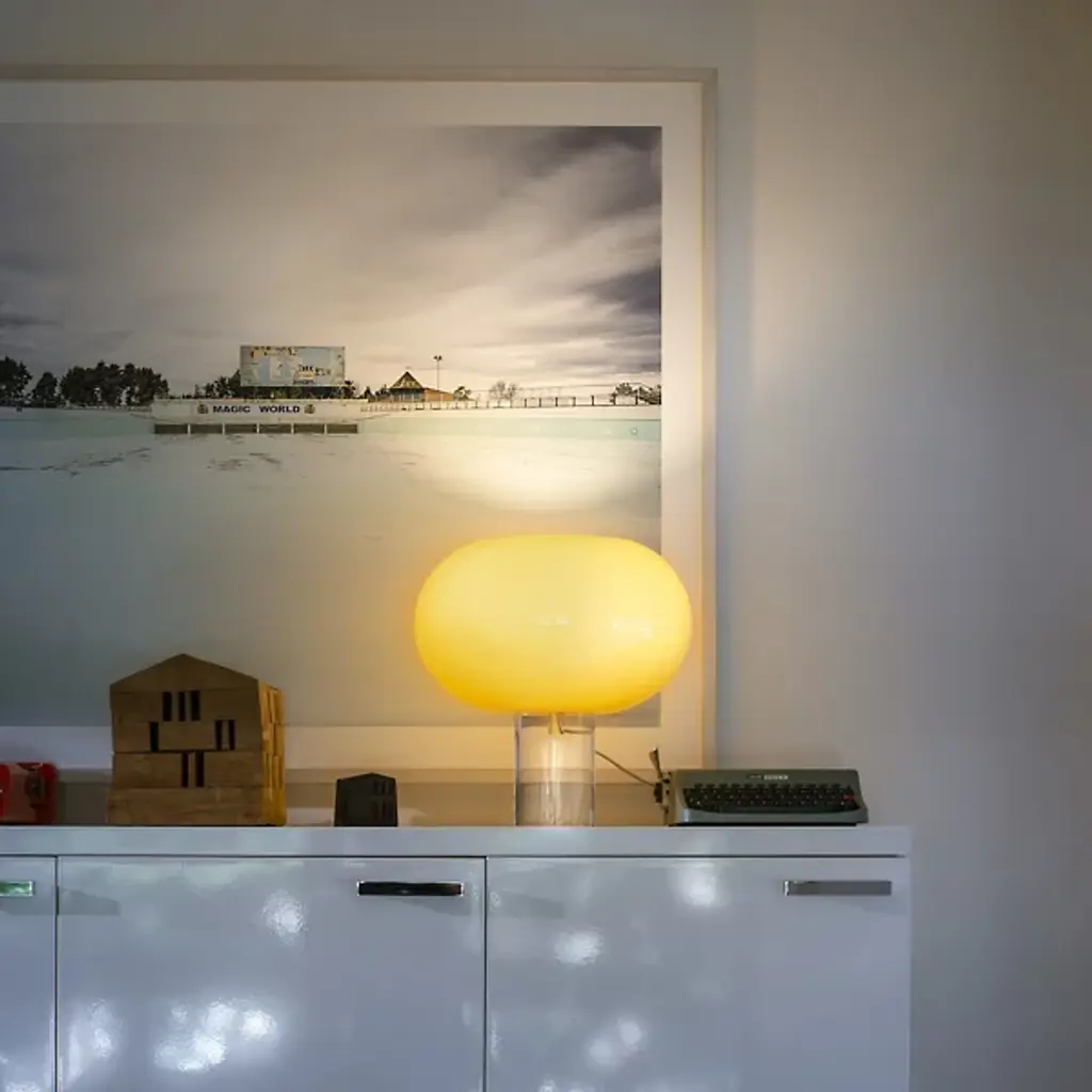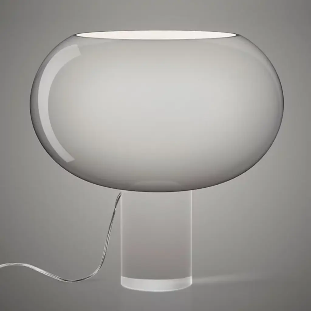With a sleek and glossy finish, the Foscarini Buds 2 Table Lamp is sure to add a touch of flair to indoor spaces. This modern table lamp is crafted from impeccable Blown Glass and features a rounded structure placed atop a translucent cylindrical foundation. An ambient radiance emanates from the fixture, providing its surroundings with a warm atmosphere.