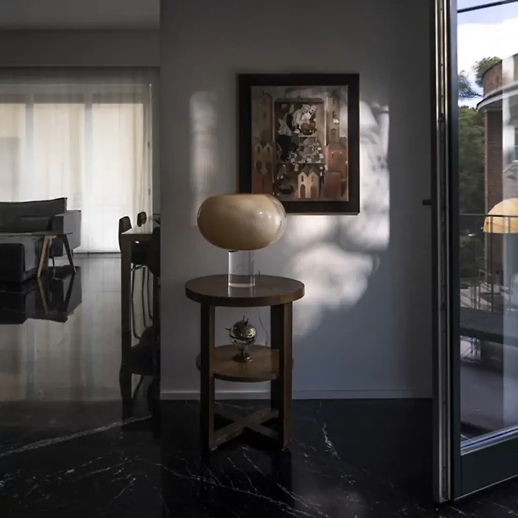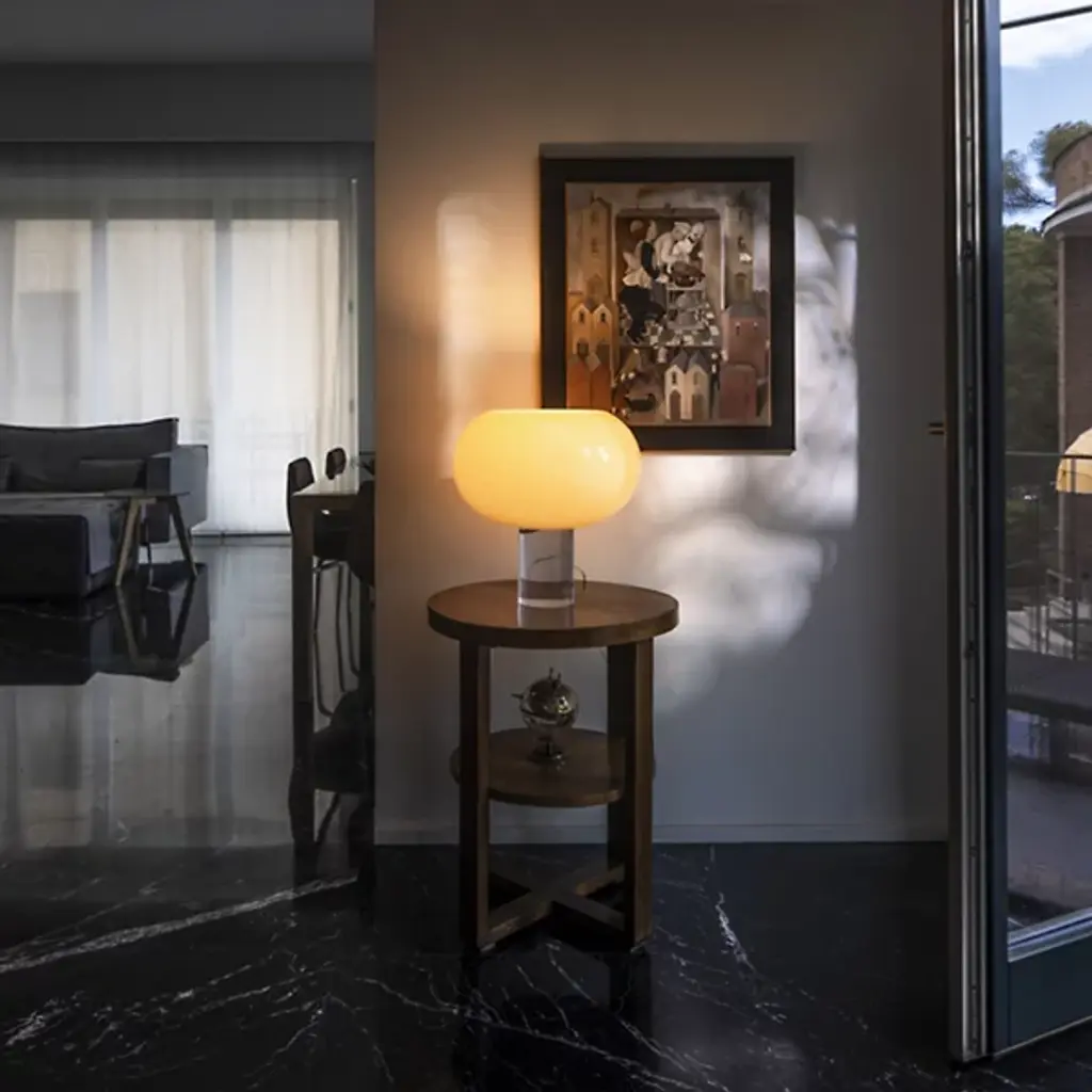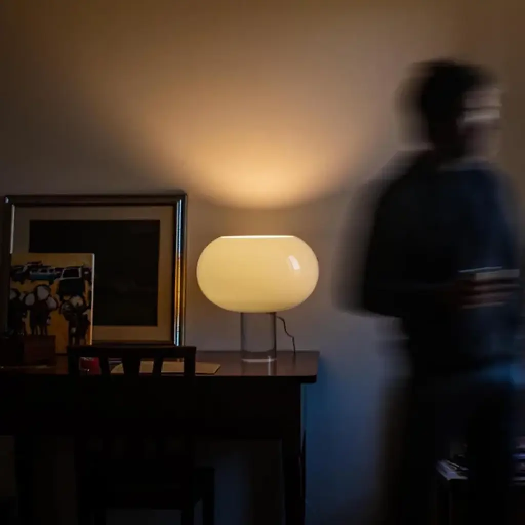 With a sleek and glossy finish, the Foscarini Buds 2 Table Lamp is sure to add a touch of flair to indoor spaces. This modern table lamp is crafted from impeccable Blown Glass and features a rounded structure placed atop a translucent cylindrical foundation. An ambient radiance emanates from the fixture, providing its surroundings with a warm atmosphere.