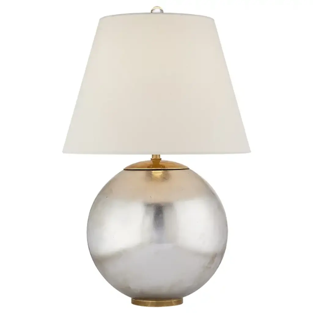 A curvaceous silhouette lends beautiful lines to this lamp's mercury glass base. A lovely piece for the transitional home, its versatile looks works equally as well in a traditional setting, too.