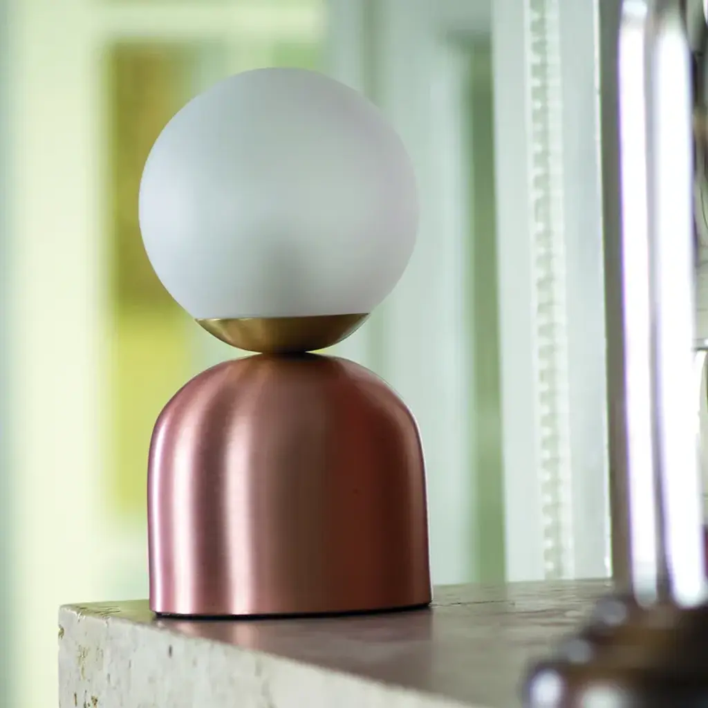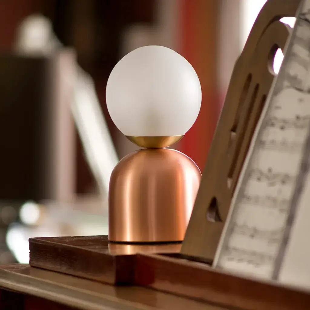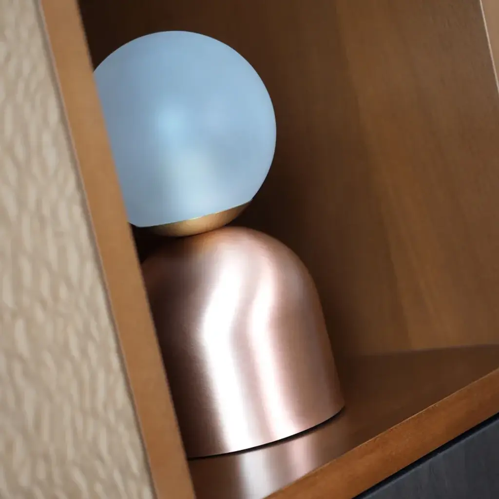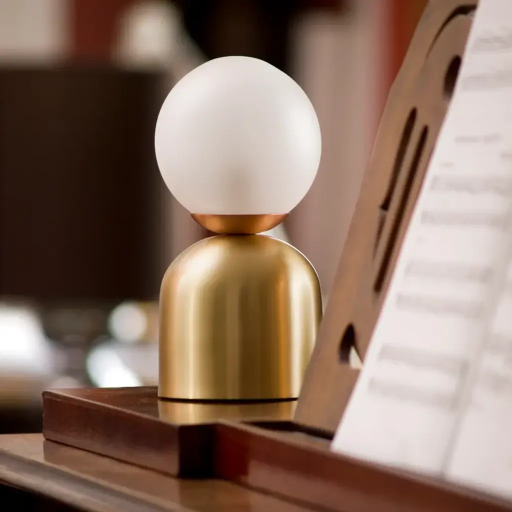BULLARUM BON BON is a table lamp with brass or copper body and blown glass sphere.HALOGEN ILLUMINATION: (120V / 240V)Halogen lightbulbs are not included to the fixture, but it is capable of accepting high voltage, G4, G5.3 and G6.35 halogen bulbs up to 35W.LED ILLUMINATION: (120V / 240V)Socket : G4Bulb : 1 x 5 Watts LEDWattage : 5 WattsLumens : 400 LumensColor temperature : 2700-3000KEnergy classes : A+ LEDDimmable : yesMATERIALS:Brass or copper body, hand - blowen glassFINISHES:Brass - polished, brashed, antiqueCopper - polished, brashedCromeBlack or white (powder coated)Order options the all finishes, and RAL colorsCERTIFICATION:CE certification of european conformityUL approved componentsIP 20 Simple, elegant forms and shapes, the finest quality of materials and workmanship. This is how best to describe Intueri’s Bullarum Collection.Since 2012 we are constantly improving this lighting family to offer the highest quality. From the perfectly finished rodes to the last screw all the products are designed, produced and assembled by Intueri LightEvery lamp is equipped with a telescopic rod, to adjust it to the perfect height for the fixture.There are 9 unique main finishes and another 9 detail finishes available for every lamp in this collection, so it customizable for the mood of the room where the fixture is going to be mounted.We believe in fast and compact shipping solutions. The lightings are arriving in a compact wooden box which secured not to be damaged through the shipping process. These boxes are compatible with air transport, even in 2 days after production the lamps can arrive anywhere in the globe.At the design table we decided that the lighting has to be easy to assemble, it takes a few minutes after putting it out from the box to mount the fixture.After mounting it, all the joints could be adjusted to accomplish the perfect visual effect.