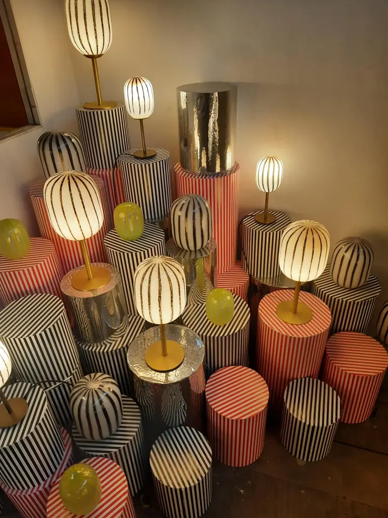 The Sugar Collection draws inspiration from our emotional connect with food. Almost everyone has some nostalgic memory of Indian desserts and our indigenous candy and the collection aimed to explore textures and colours of the food-scape to design lighting.The Indian Bullseye candy inspired glass forms the focal point of this series. The hand blown glass created with Czech glass blowers mimics the Bullseye mint candy to create a series of customisable fittings.