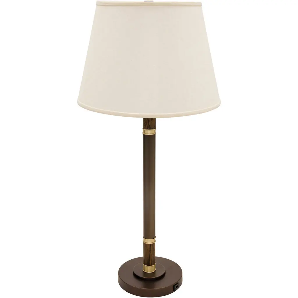 The Robert Abbey Buster Chica Table Lamp offers a straightforward design with a classic drum shade and polished metal stand. Full range dimming capabilities may be manipulated with the turn knob on the stem.