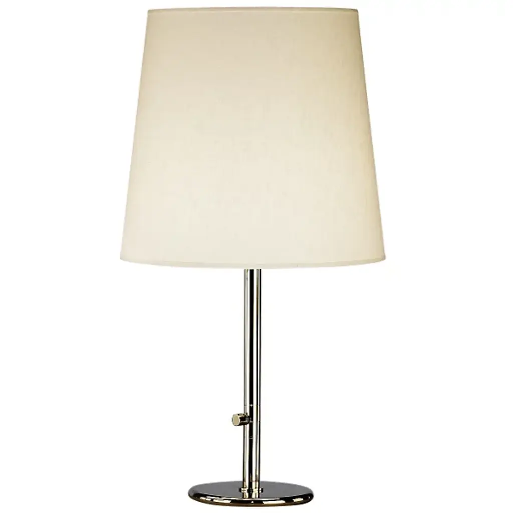The Robert Abbey Rico Espinet Buster Table Lamp offers a classic fabric drum shade for your choice of soft or powerful light diffusion. Able to harness up to 200 watts, the Rico Espinet Buster Table Lamp may be dimmed or brightened with its full range dimmer to accommodate the user’s preference. Its metal body is a strong contrast to the hardback drum shade, adding a hint of sophistication to its overall design.